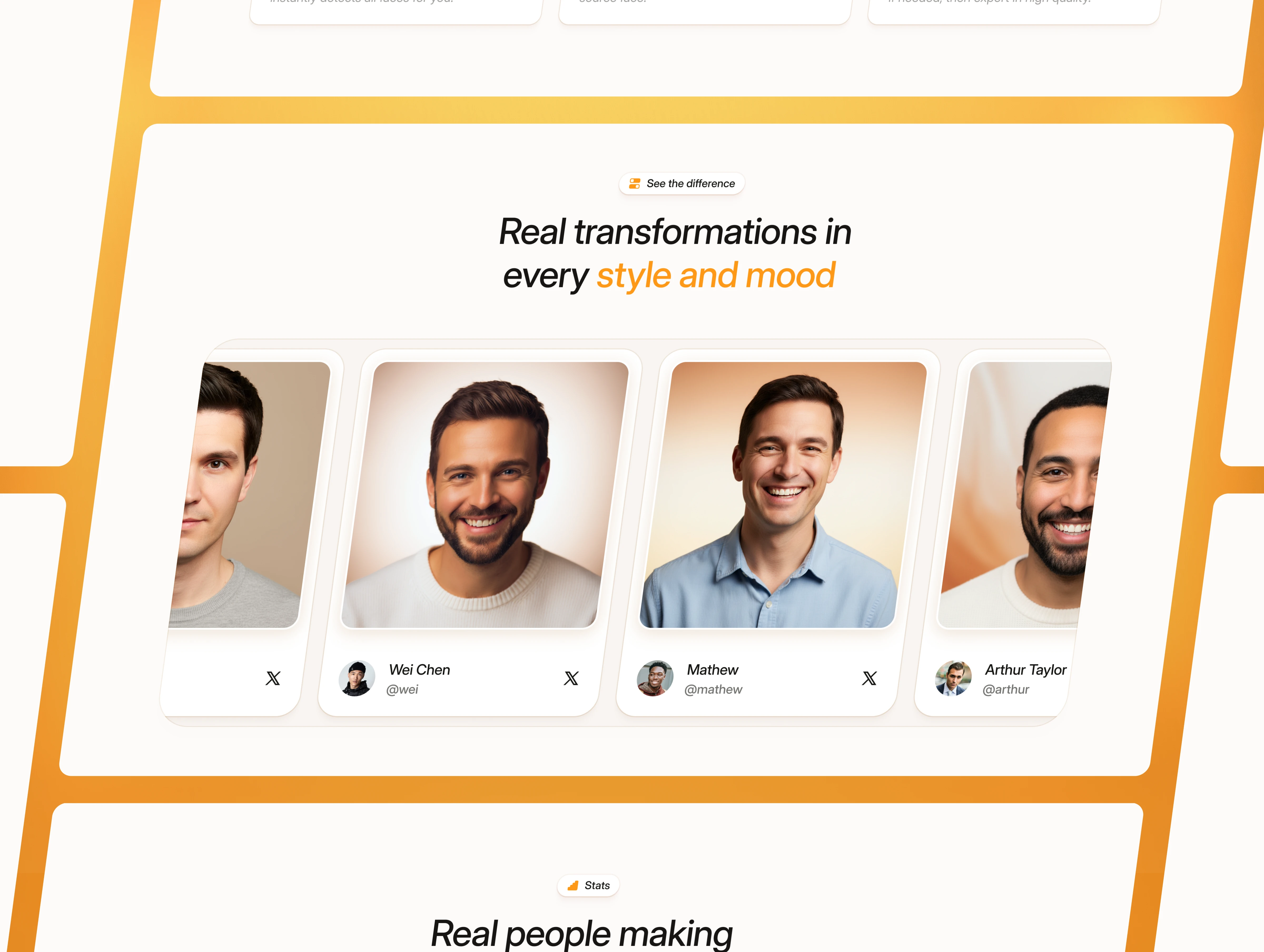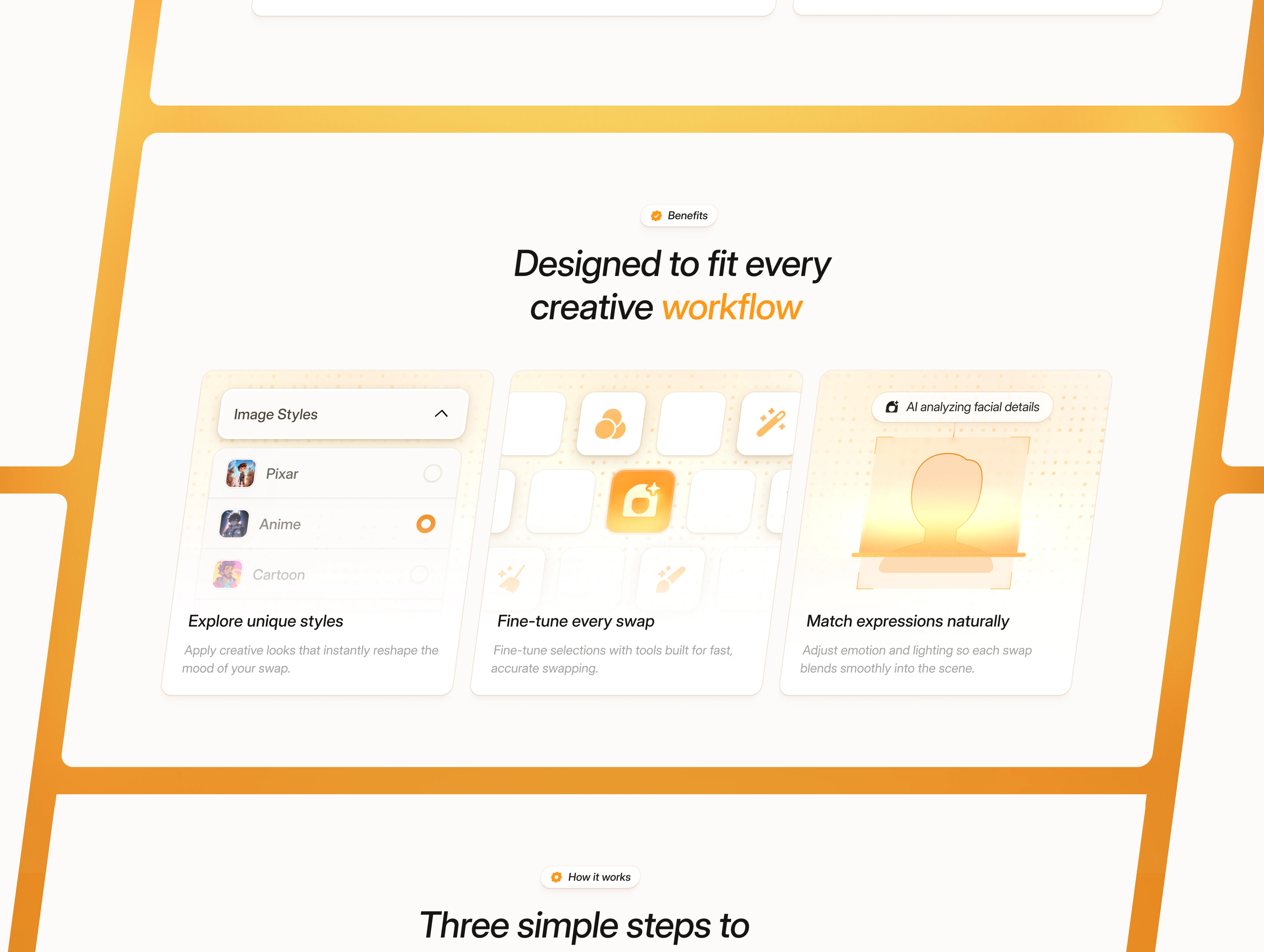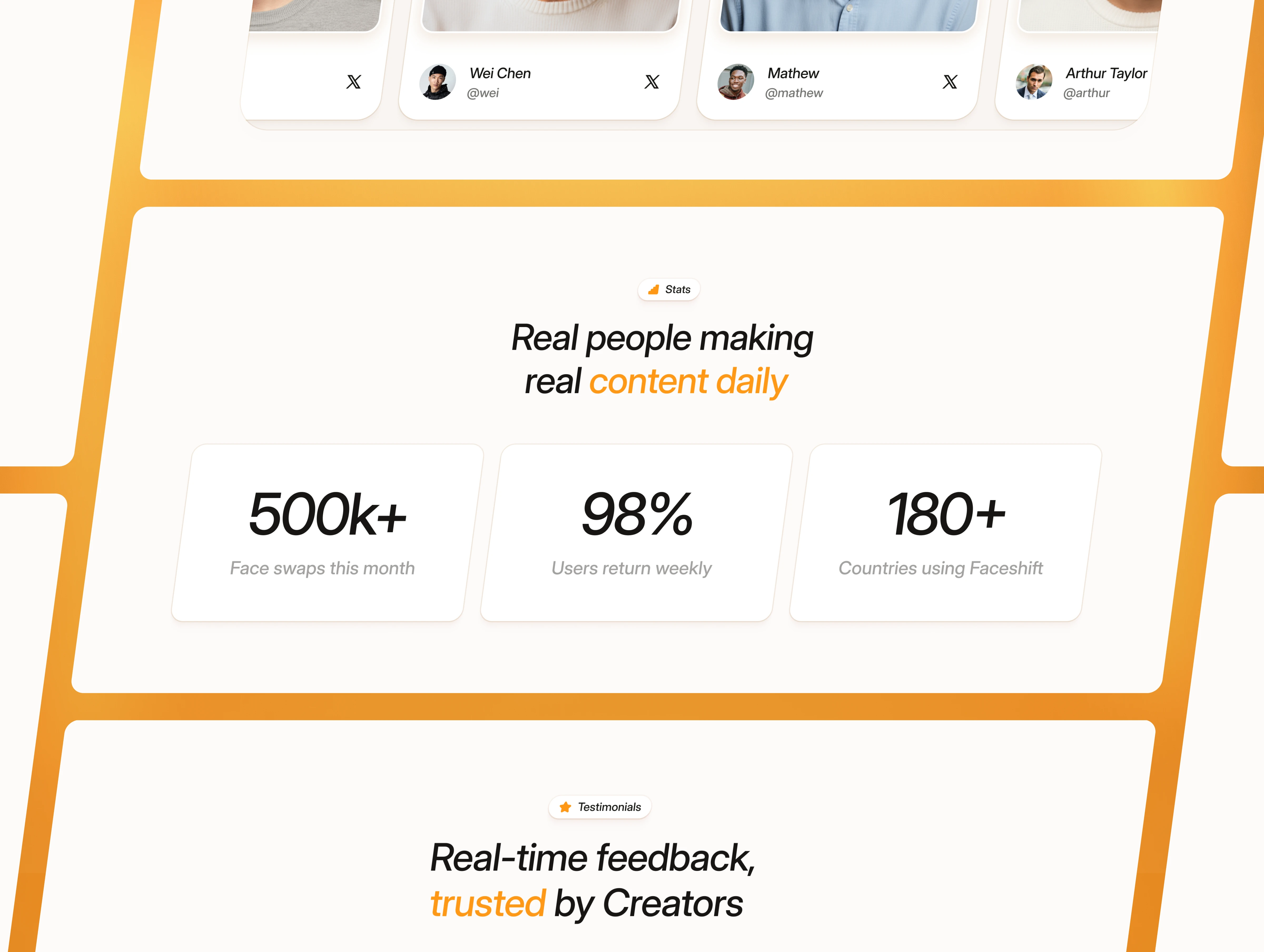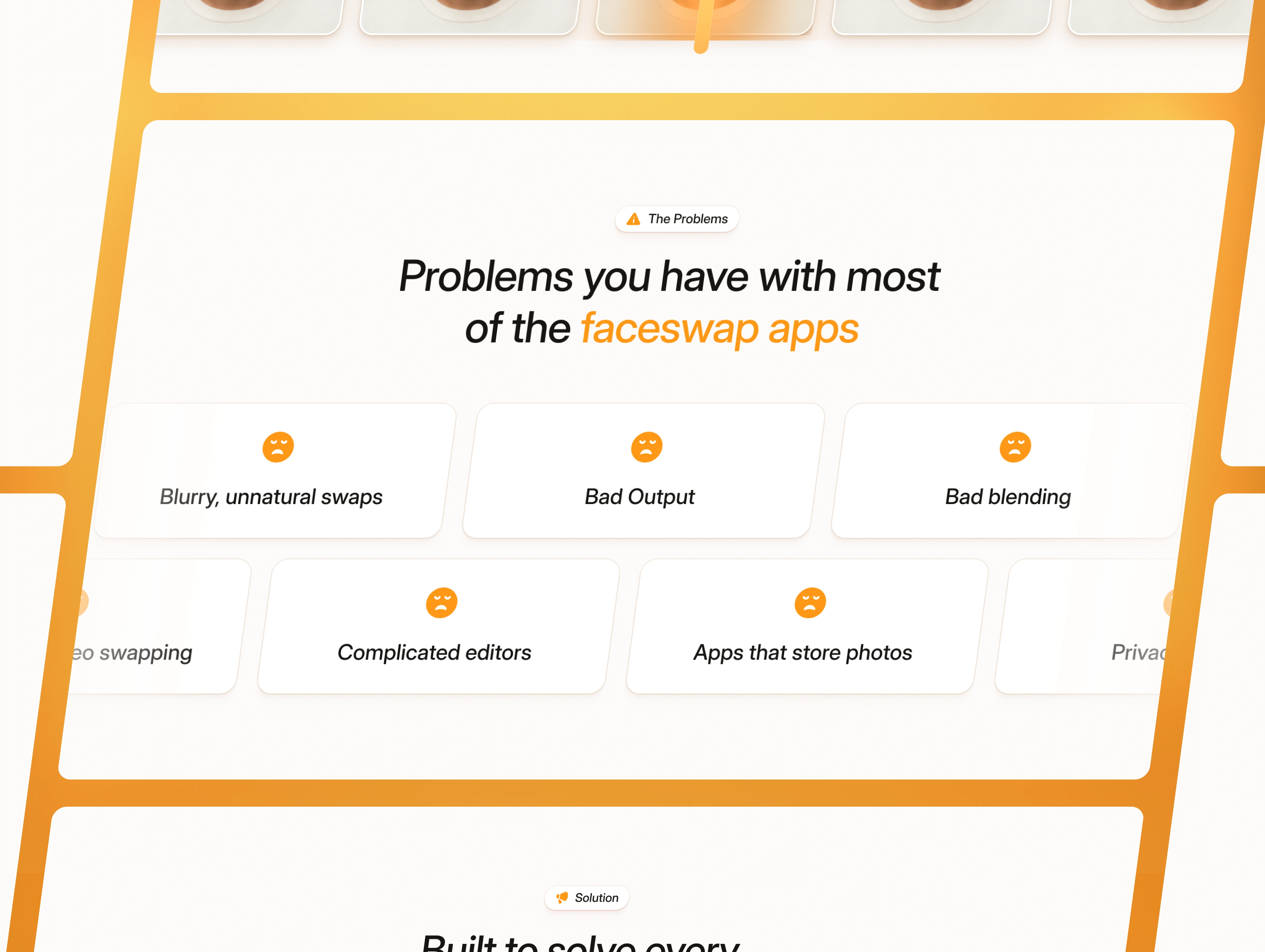 Faceshift is a landing page designed for AI editing apps, face-swap tools, video enhancement platforms, and browser-based editing products.