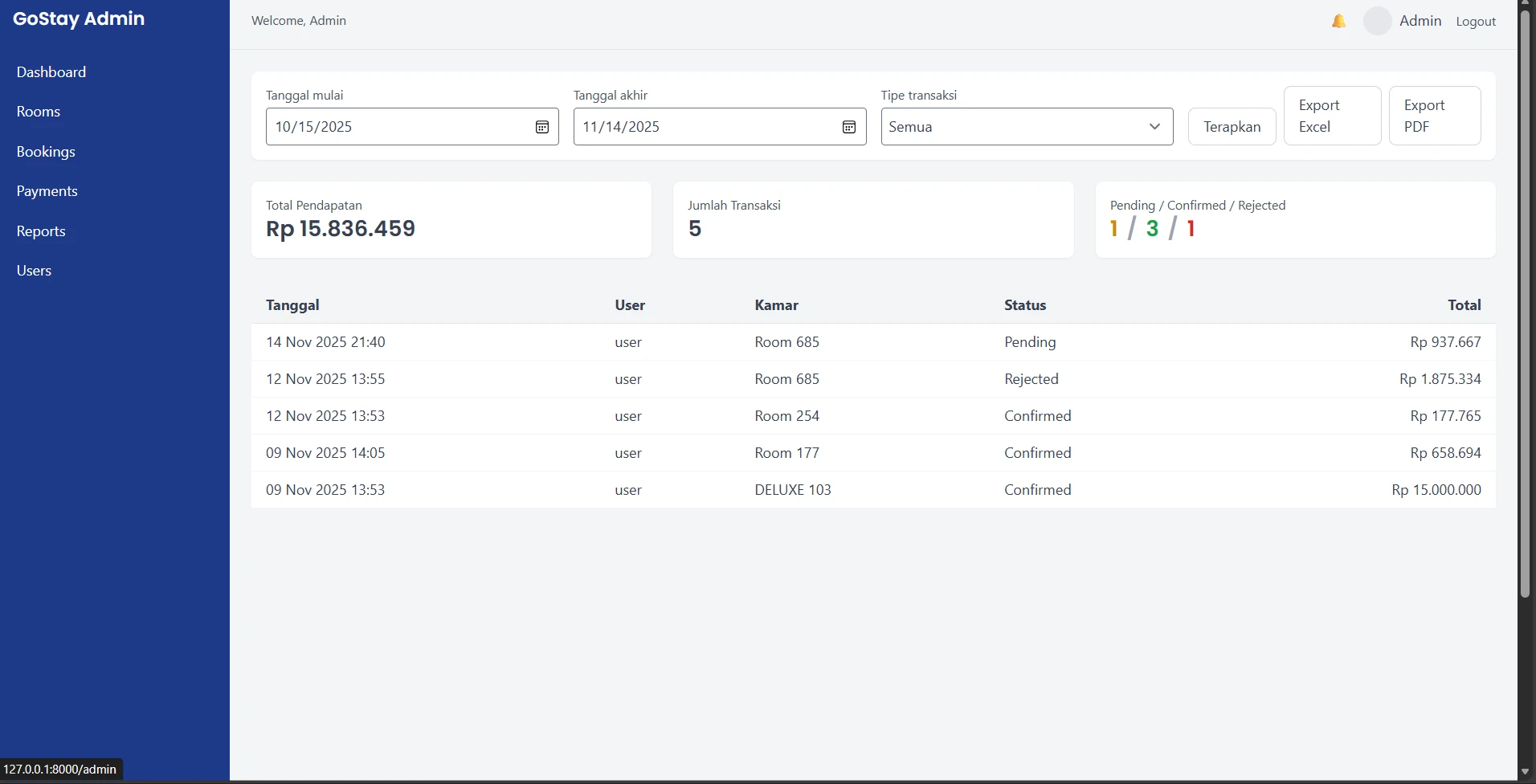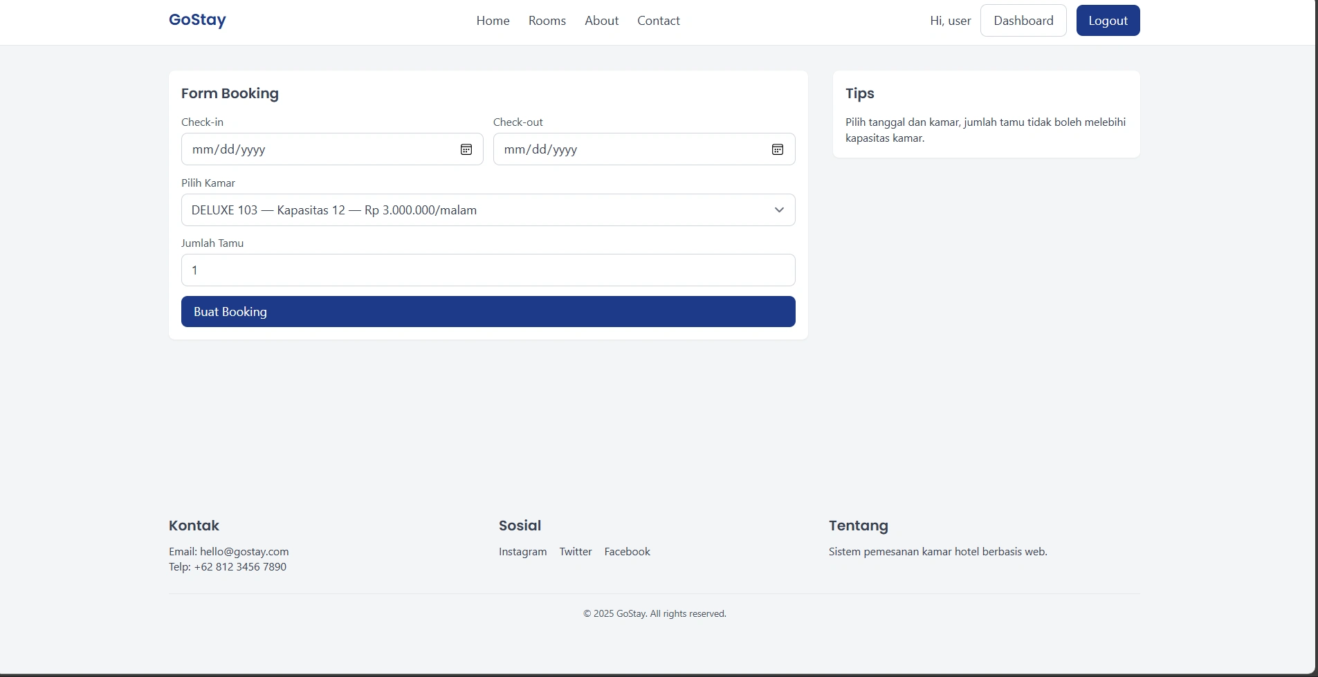 Developed a Room Booking web app with Laravel, featuring user roles, secure data, and admin tools.