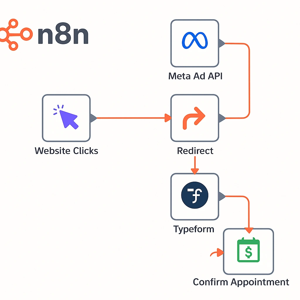 Automated lead capture to appointment via Meta Ads, Typeform & WhatsApp, boosting conversion and reducing manual effort by 70%.