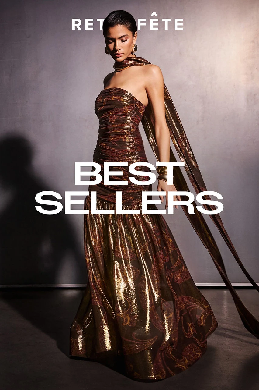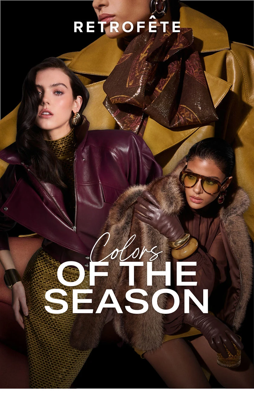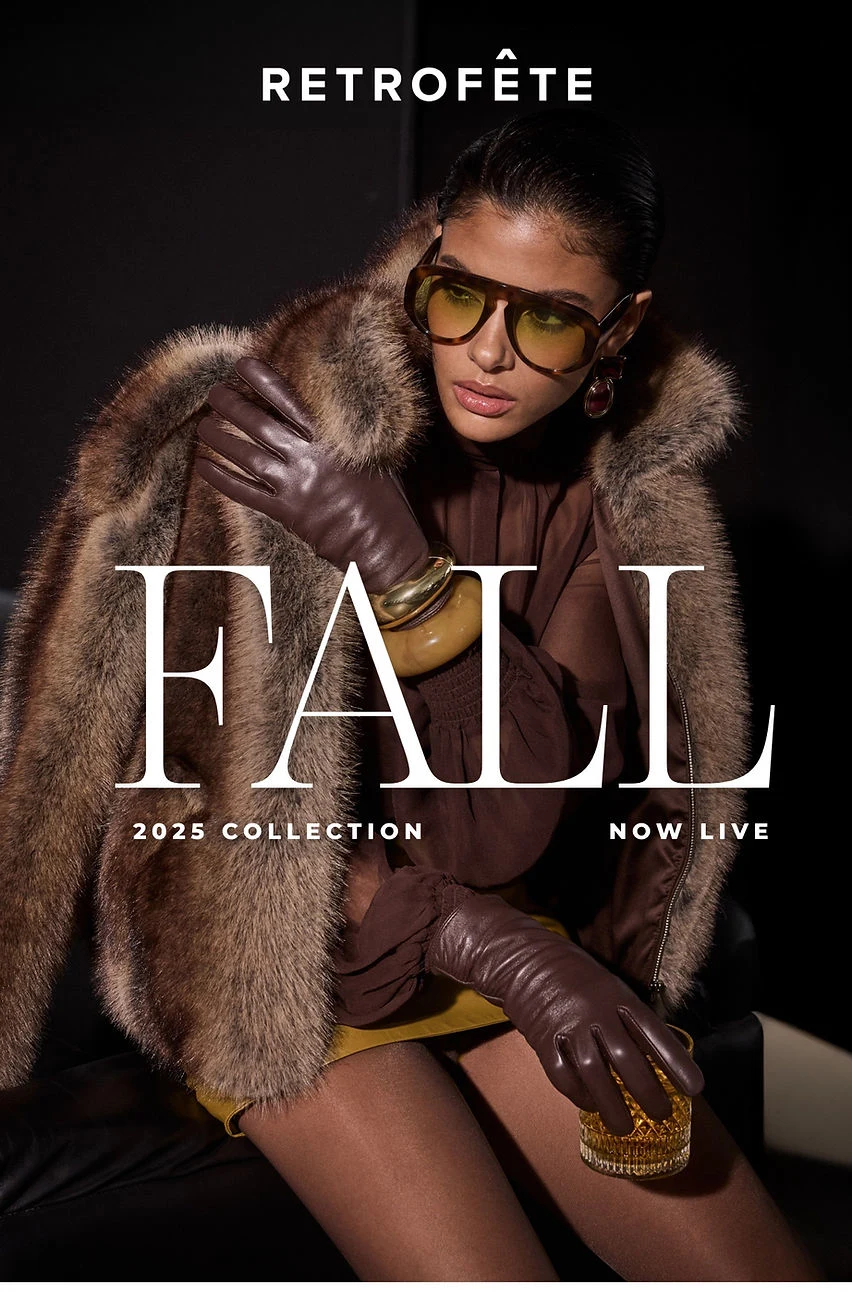 Fall '25 marks an evolution — the Retrofête woman stepping fully into her own. No longer just the life of the party, she is the effortlessly sophisticated presence that commands every room she enters. Refined delicacy meets structured strength. High-society soirées in monochromatic crepe gowns. Moody martini bars in sheer lace and animal print. Power dressing that never sacrifices sensuality.