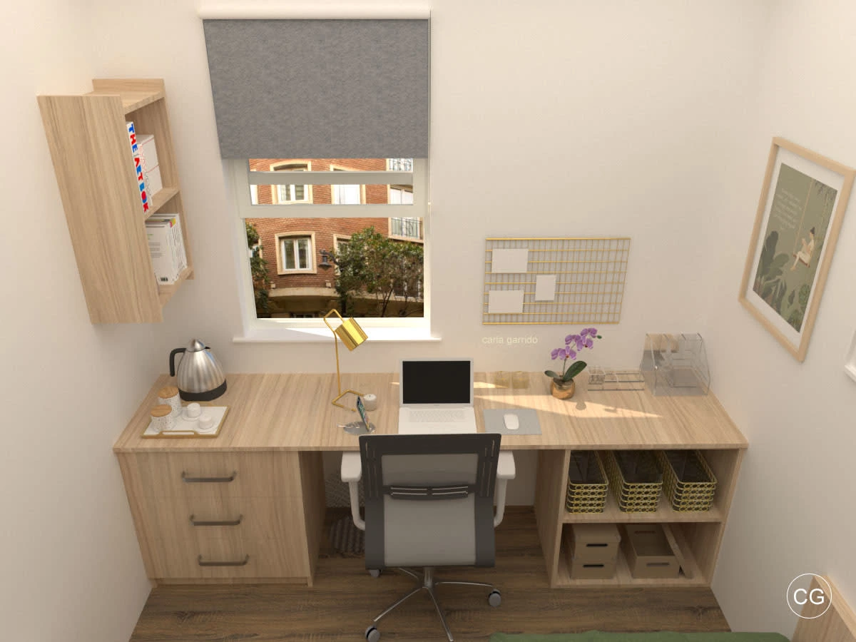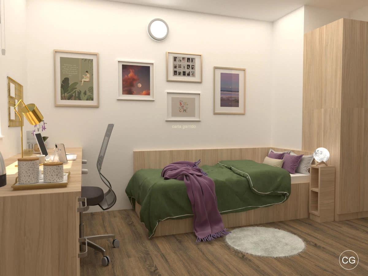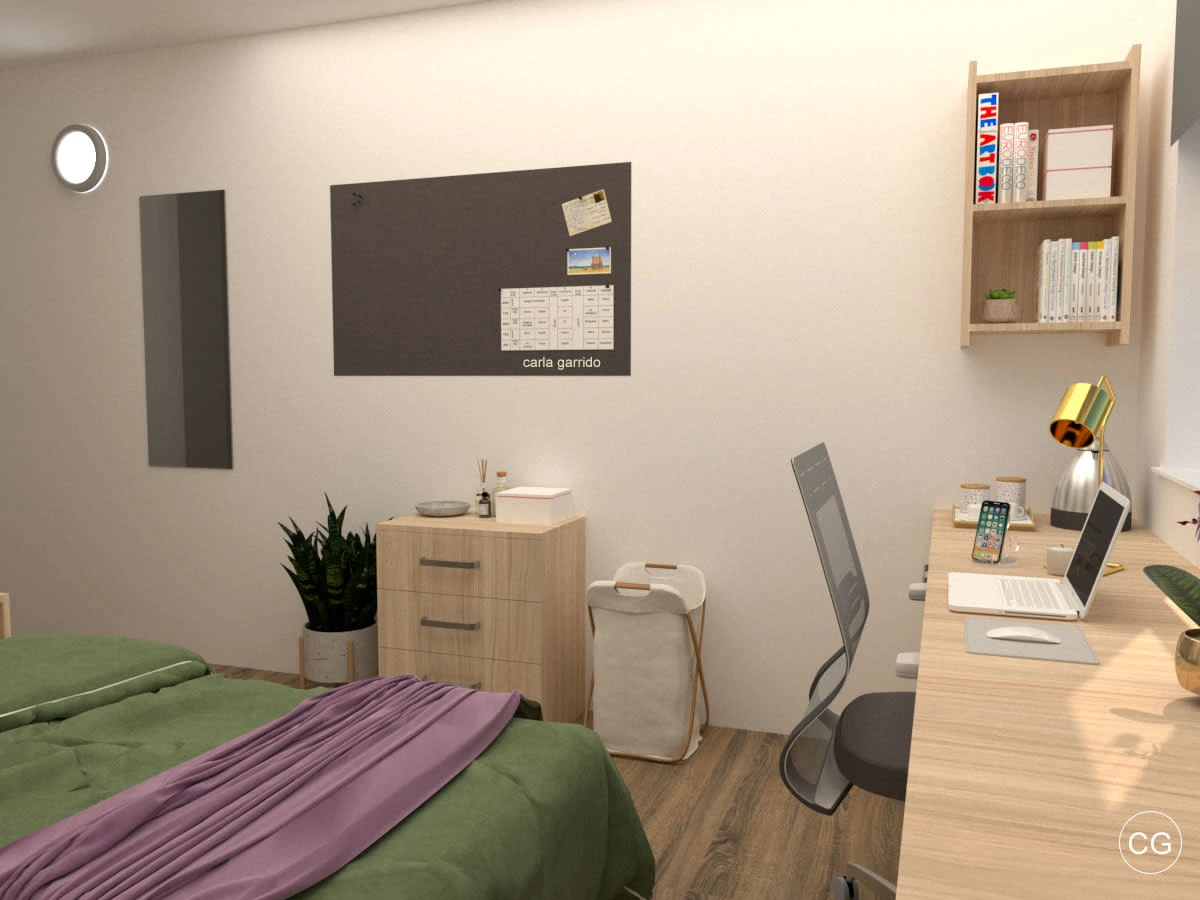Styling for a university dorm room where some elements such as the bed, furniture, mirror, among others, cannot be changed or moved. Therefore, decorative acces