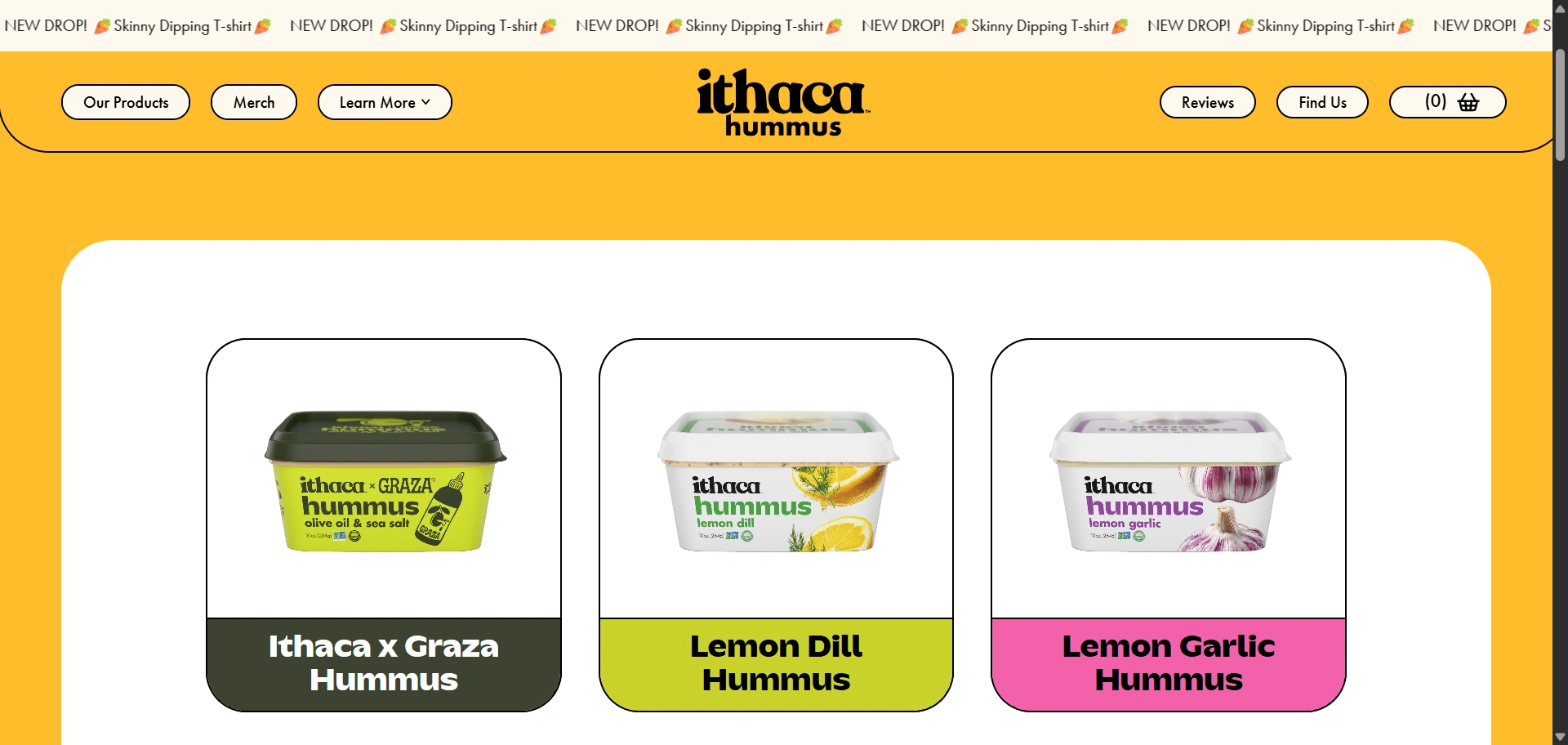 Ithaca Hummus is a retail hummus brand websitewith a diverse line of bold, fresh‑tasting flavors available nationwide. This website mainly promotes products, helps you locate them in stores, and offers recipes and merchandise.