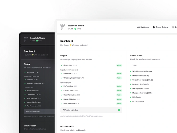 Meet the new pixfort Core Dashboard Interface ✨ We’re thrilled to unveil the brand new dashboard for pixfort Core in the Essentials WordPress theme! 🎉