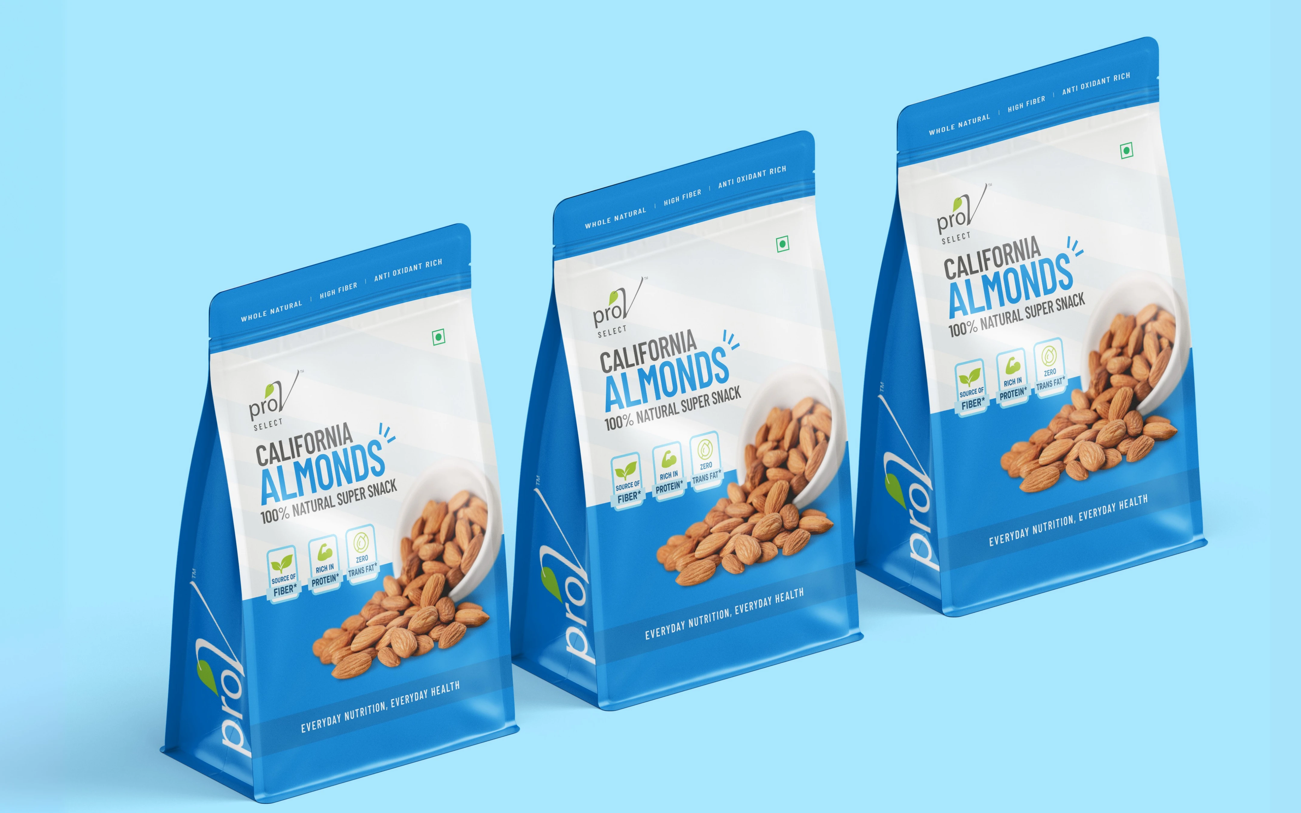 The final design gave ProV Select Almonds a fresh, modern look that highlights their nutritional value while positioning them as a premium lifestyle choice. The packaging balances functionality, shelf presence, and consumer appeal.