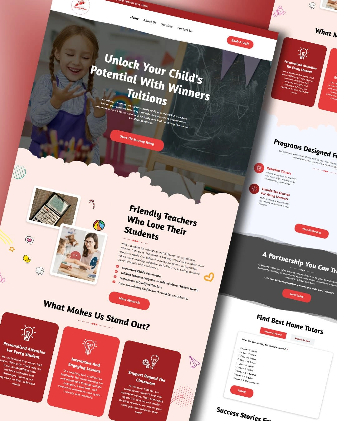 Winners Tuitions is a modern educational website designed to help parents discover personalized tutoring services for their children.