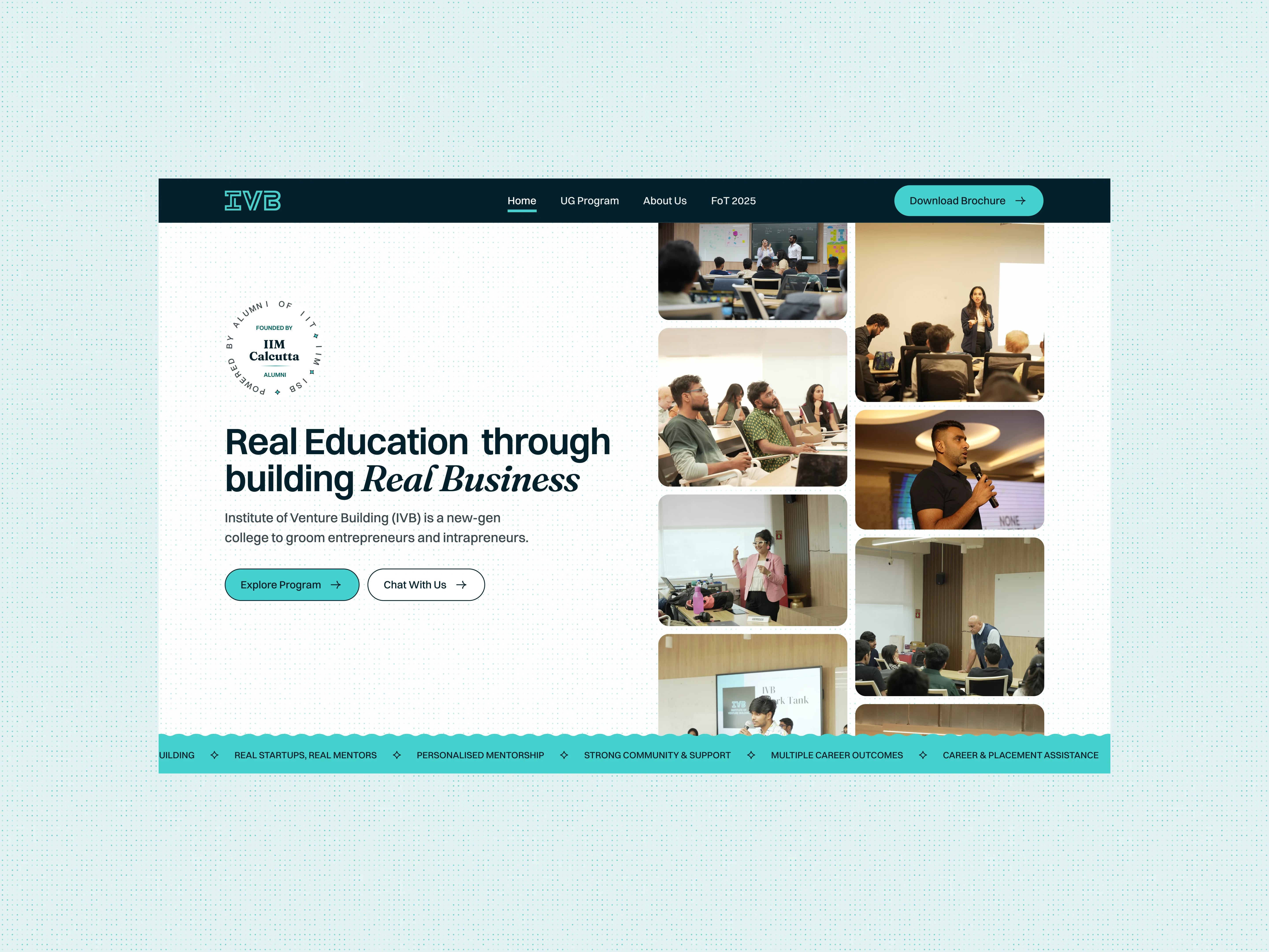 Redesigned a Chennai B-school's outdated website to drive conversions. Came in via referral from a previous client. Site traffic increased post-launch.