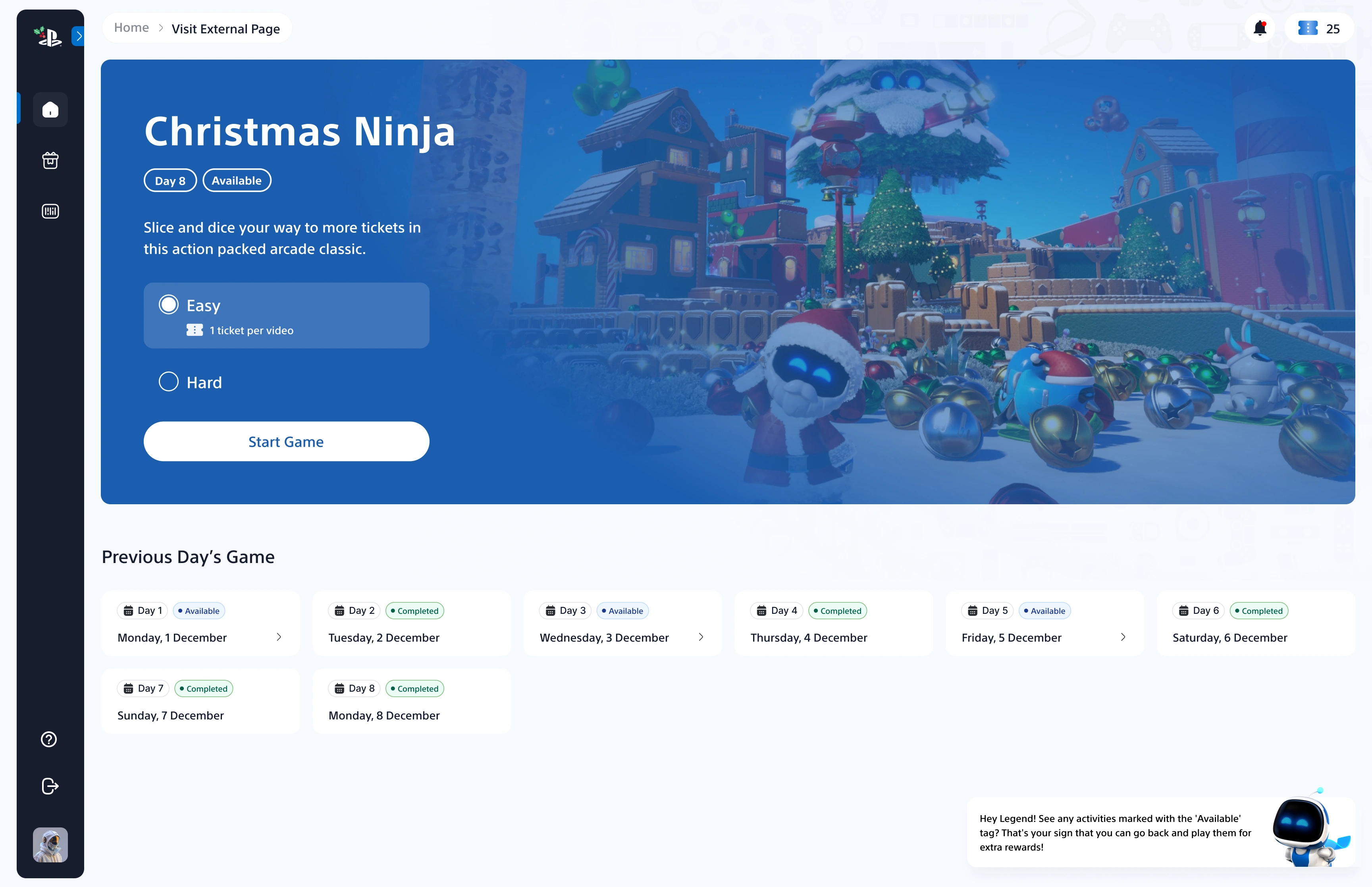 Instead of basic click-through tasks, I designed the UI for a suite of custom browser games, including Christmas Ninja, Collect the Shapes, and Memory Match.