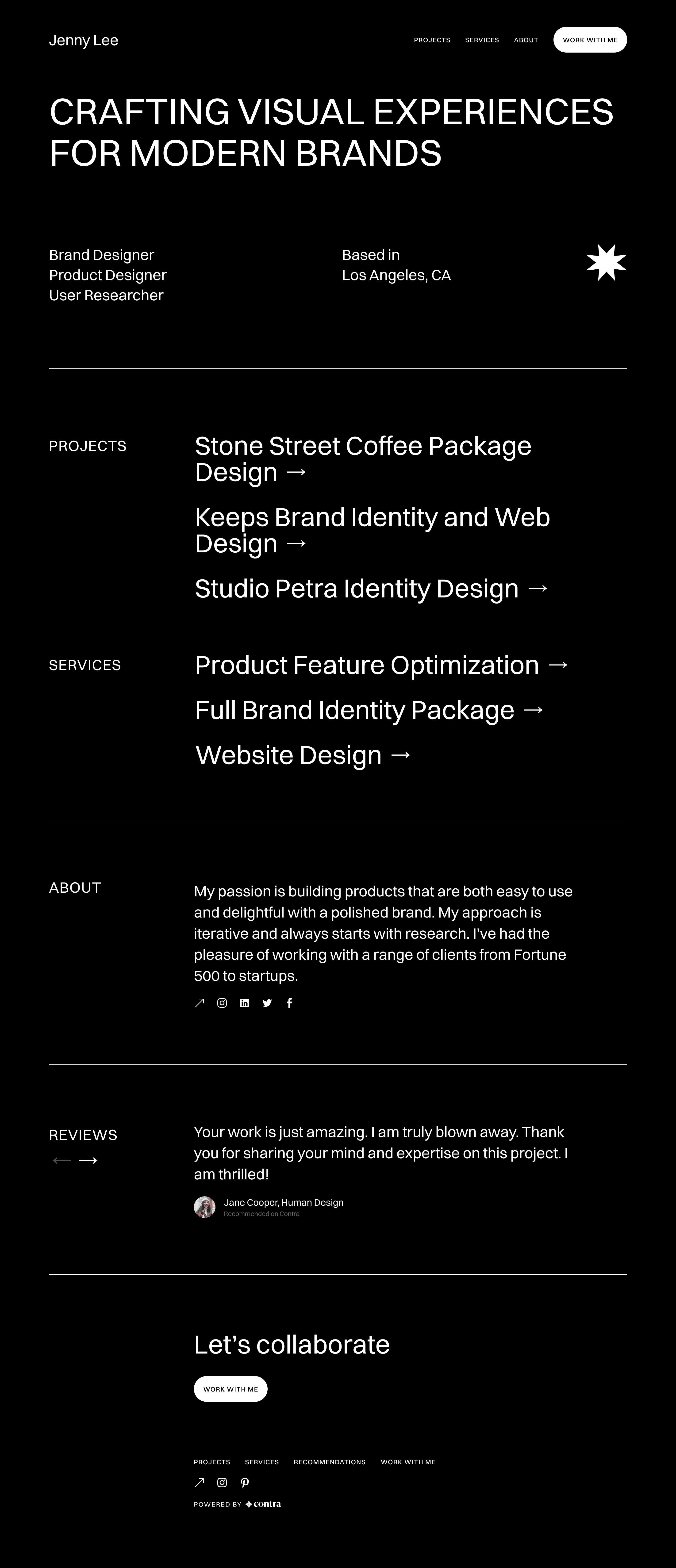 Contra portfolios compare to Squarespace, Wix, Webflow, Carrd, and other portfolio website builders—but Contra takes it a step beyond. Freelancing is our business, so we’ve optimized all templates, tools, and features for the unique needs of freelancers to generate demand and earn money. With Contra, you can show off your work, manage contracts, get clients, and get paid commission-free —all from your portfolio.