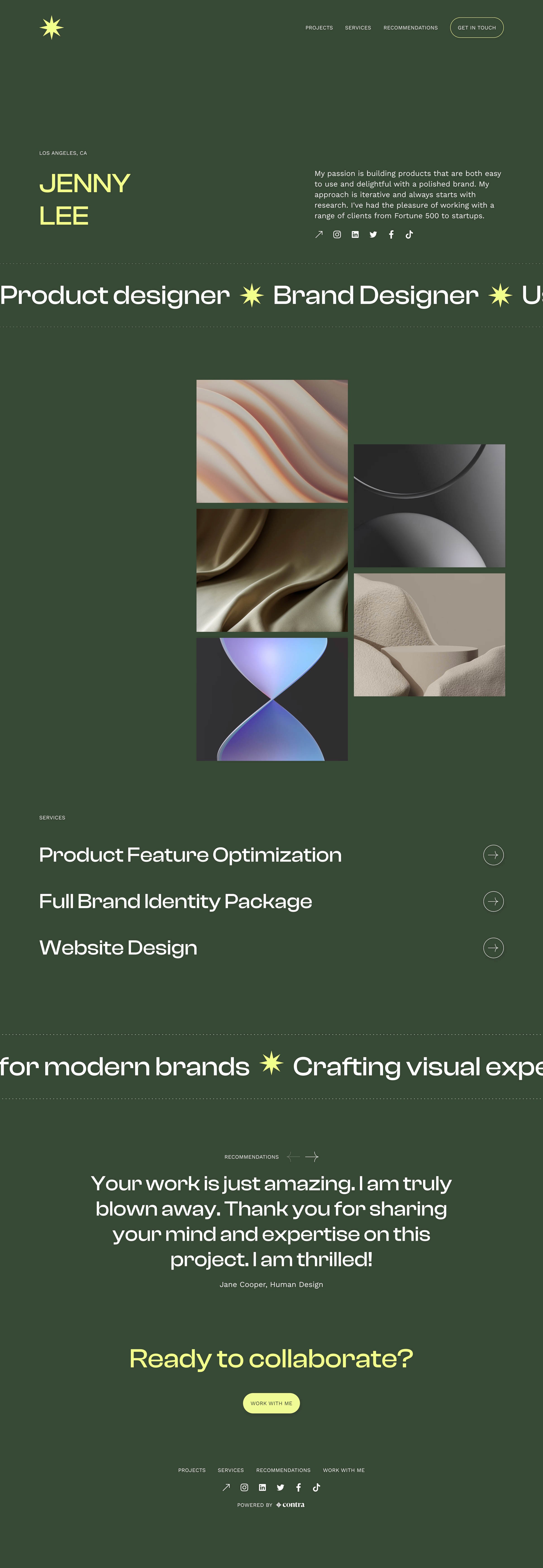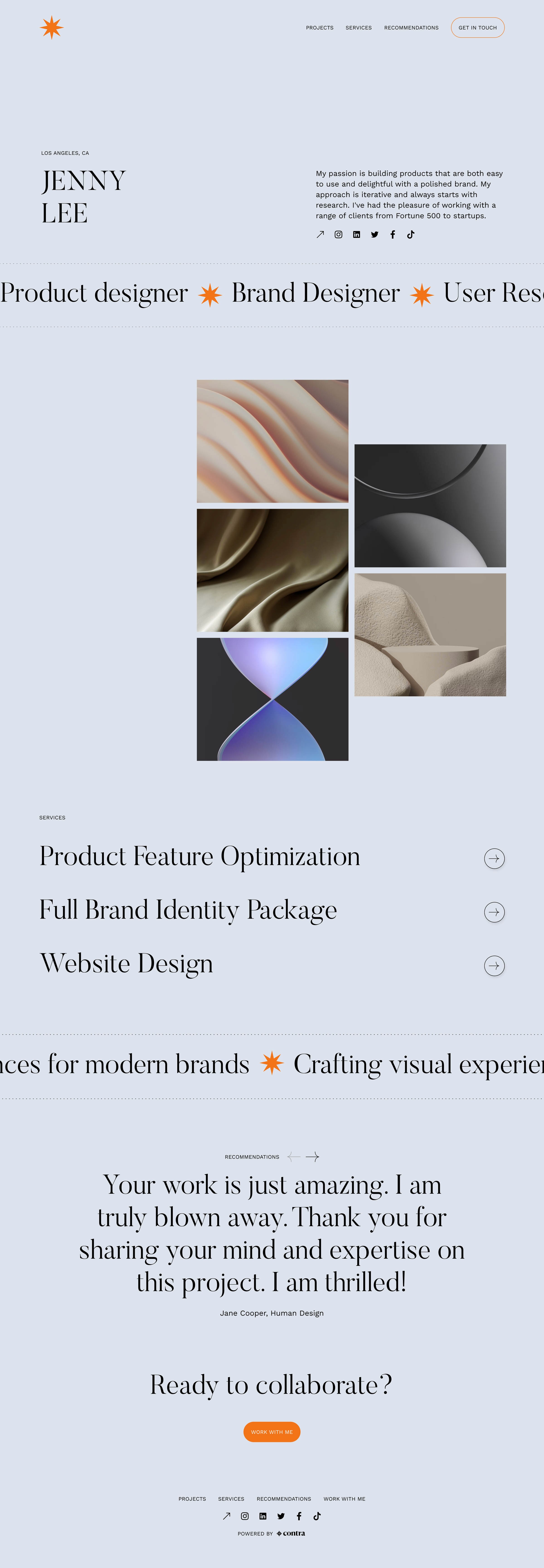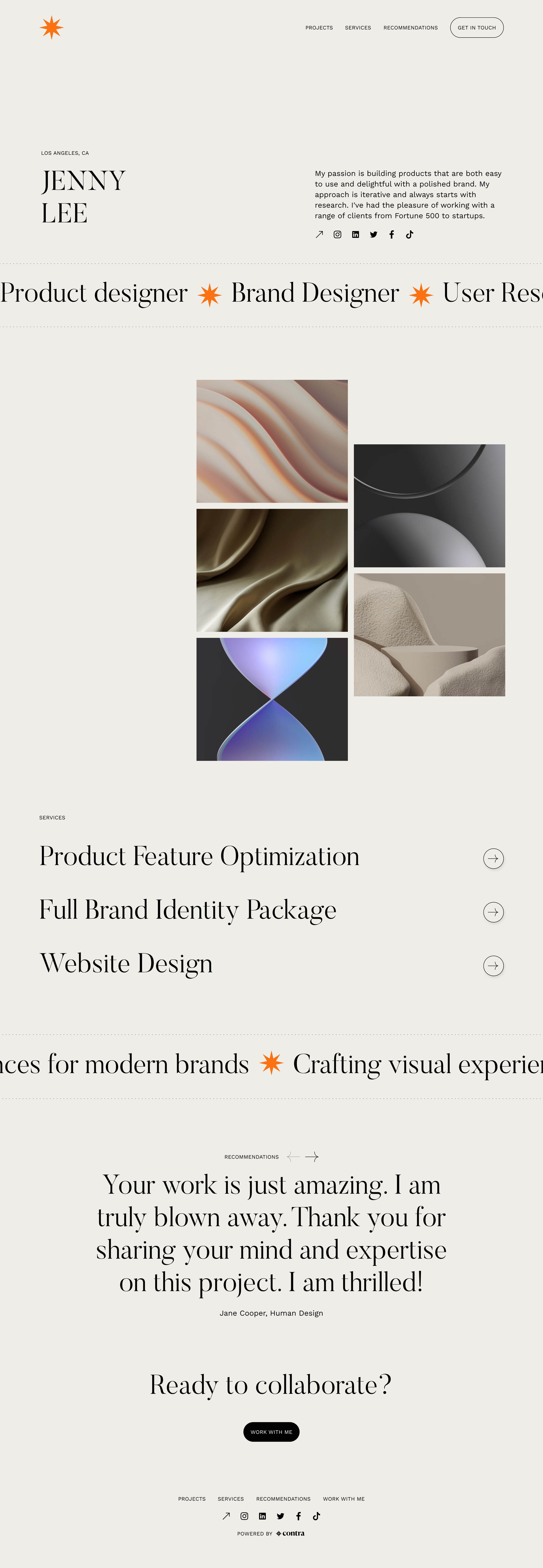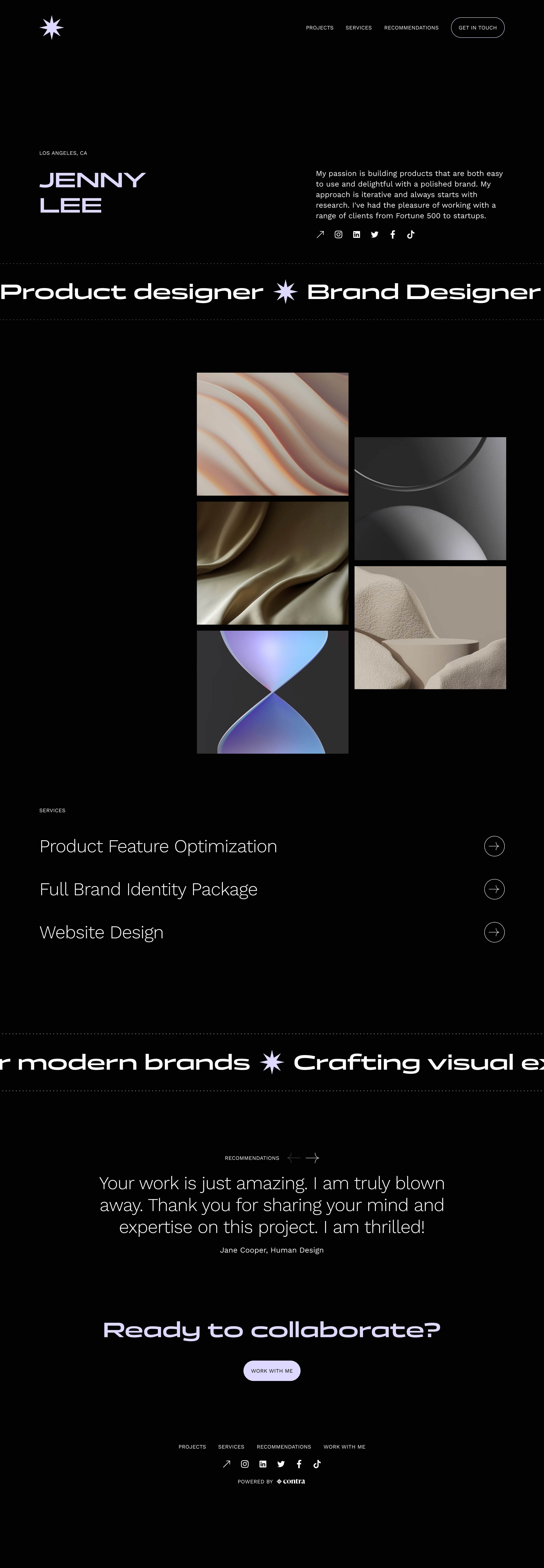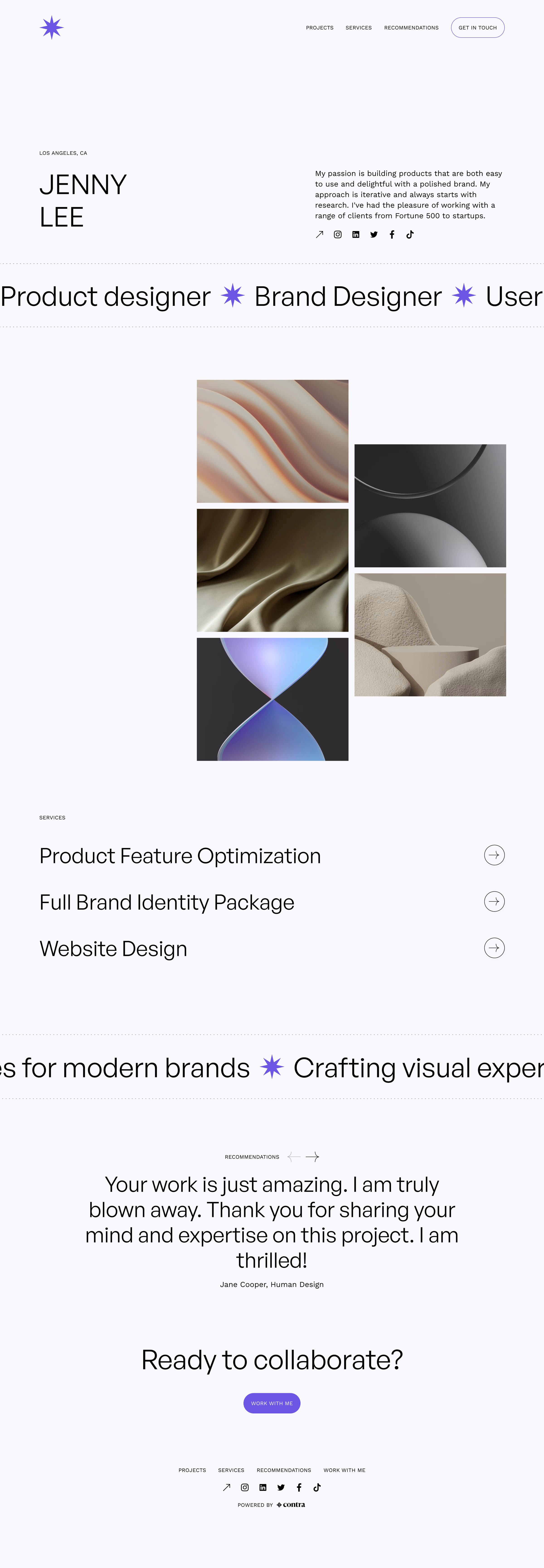 Choose a design theme: Select a portfolio design theme from the available options above. Contra's portfolio templates make it easy to build your own personal website - you don't have to be a graphic designer to have a beautiful portfolio!