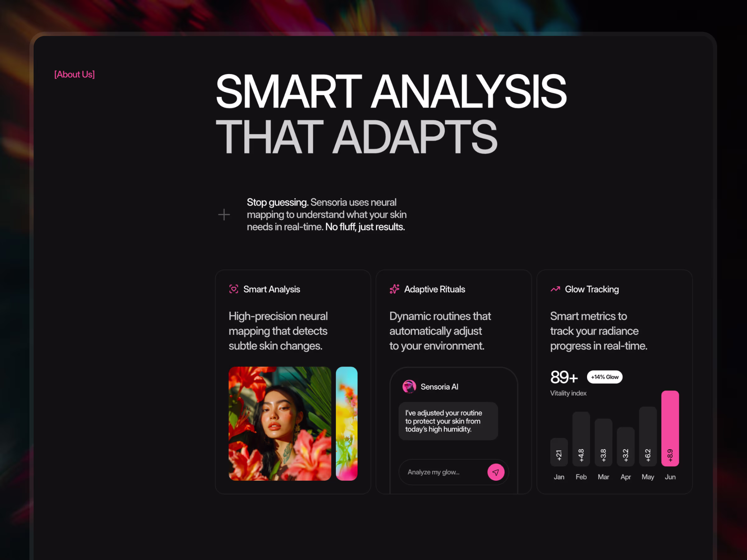 Built for founders who want a futuristic, visually bold website to showcase AI-powered beauty products and digital skincare experiences.