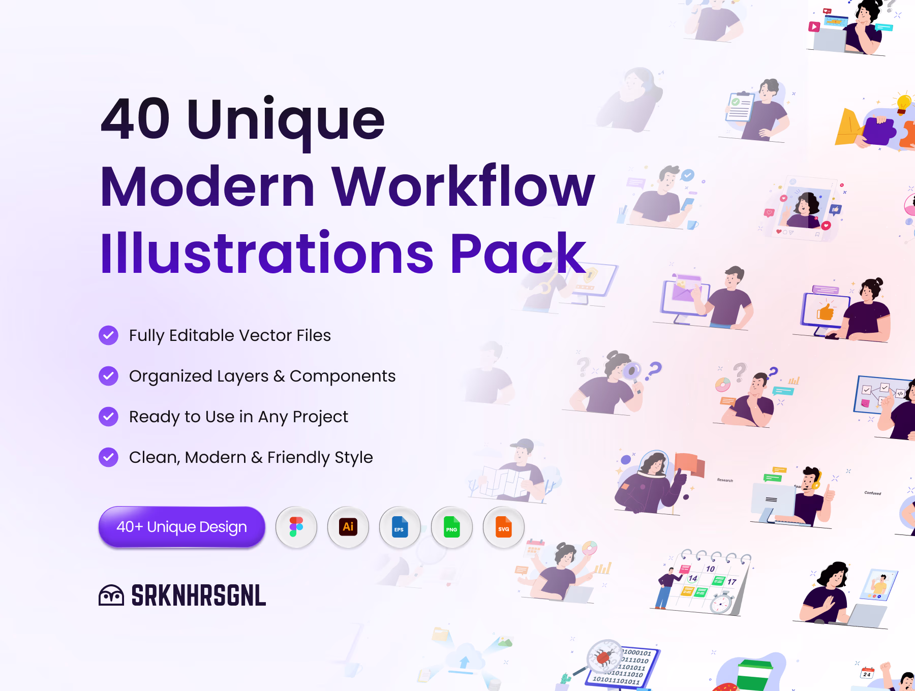 A collection of 40+ modern, clean, and expressive illustrations designed for digital products, websites, and presentations.