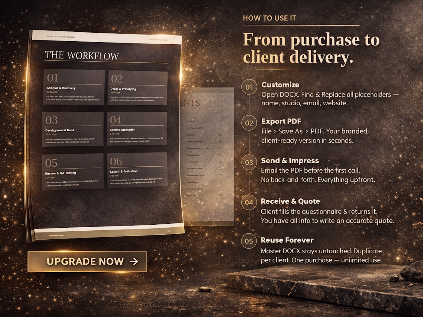 ✓ PDF — the send-to-client version, pixel-perfect and print-ready
