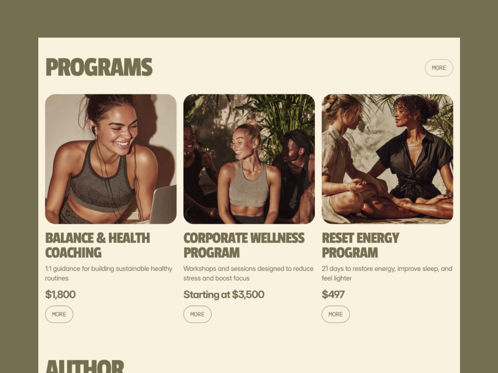 The Wellbe template is crafted for wellness coaches, health experts, and mindful creators who want to share programs, values, and insights with clarity and impact. It combines a minimal editorial design with immersive visuals, building trust and emotional connection from the first visit. Fully responsive and easy to customize, it helps you launch a professional wellness website in days, not weeks.