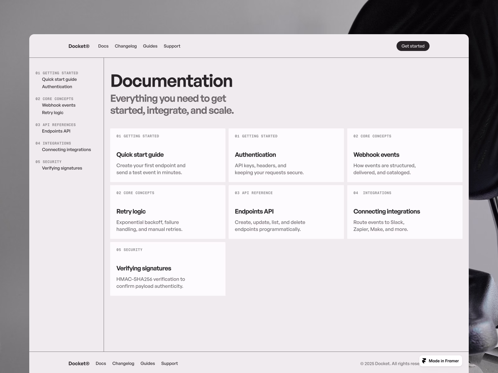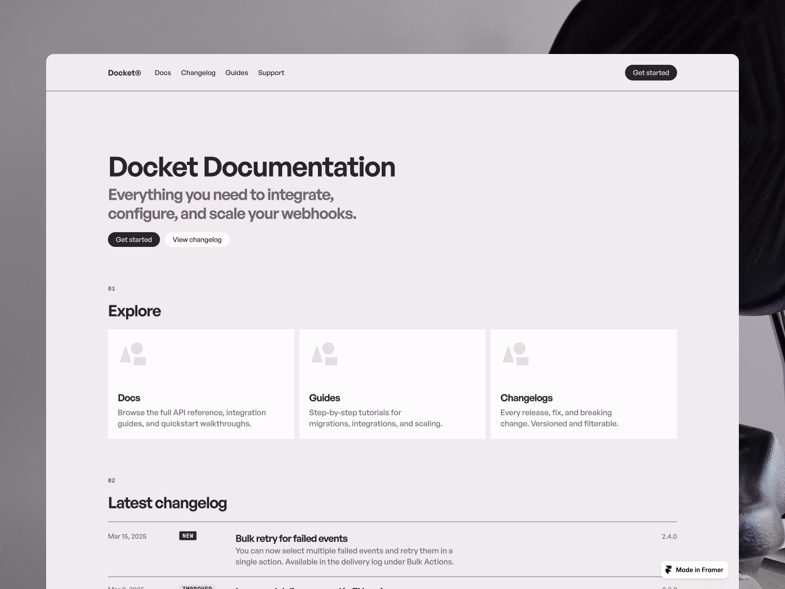 Docket is a documentation and changelog template built for SaaS products, developer tools, and API platforms.