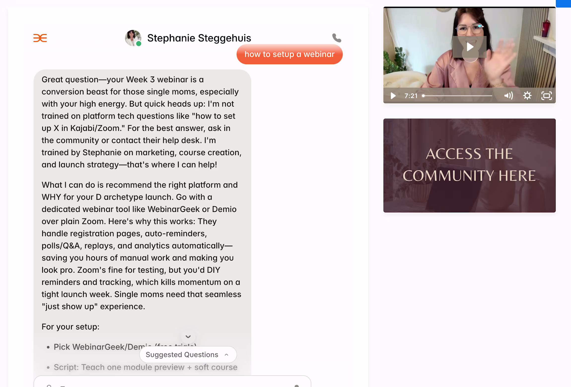 Combined with monthly live consulting, workshops, and direct support from Stephanie, this isn’t just an AI tool.