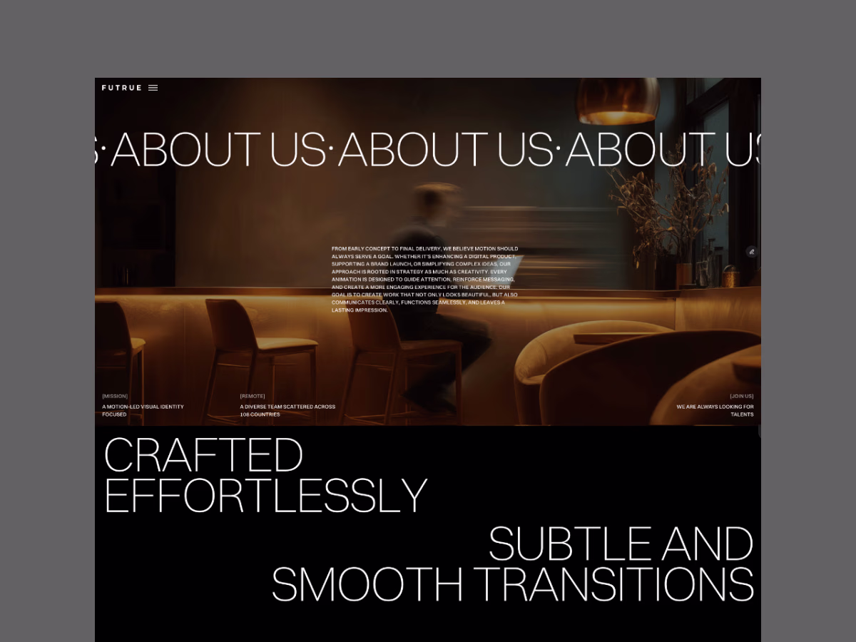 FUTRUE is a modern Framer website template designed for creative studios, motion designers, and digital professionals who want to showcase their work with impact. Built with clarity, flexibility, and a unique visual storytelling in mind.