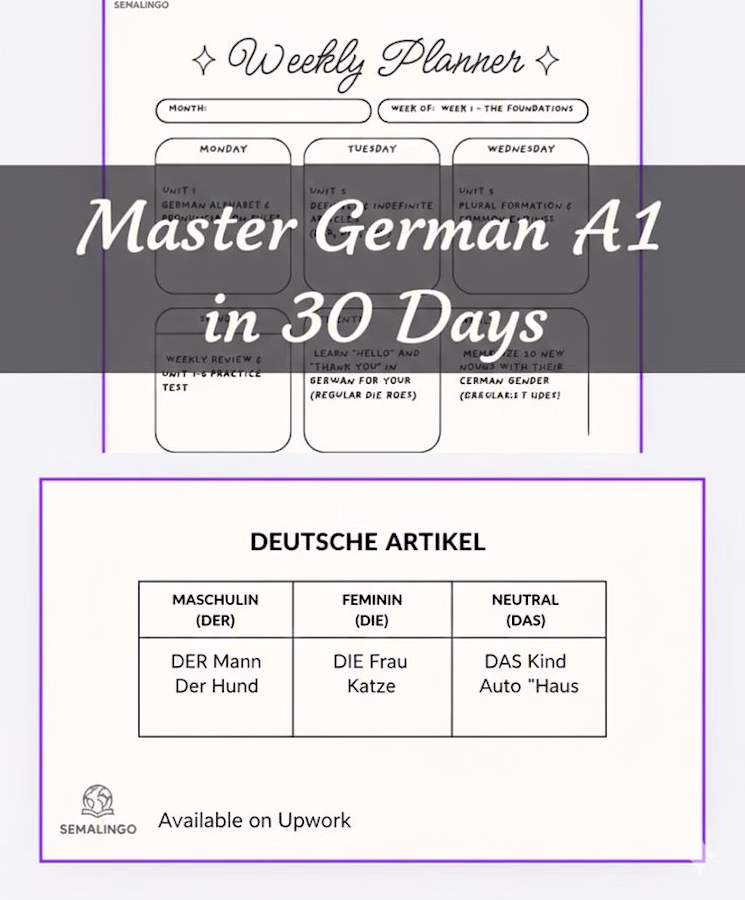 A1 German Grammar Starter Kit: Visual Guide & Cheat Sheets