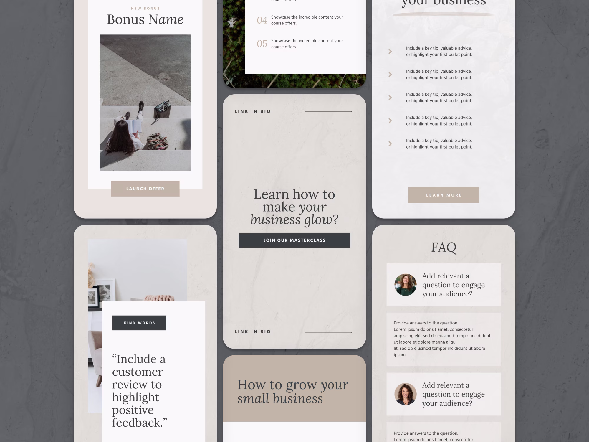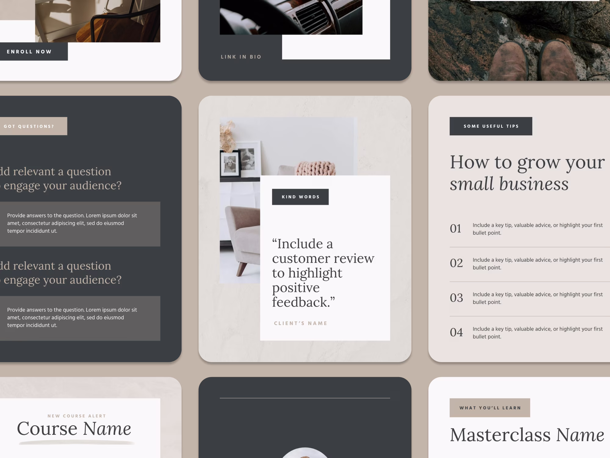 Designed for the modern thought leader who wants to make a powerful impression, the Parker Canva Social Media Templates blend strength with sophistication. This collection features bold layouts, clean lines, and editorial-inspired typography — perfect for coaches, consultants, and creators ready to elevate their brand presence. Every template is built in Canva for effortless editing and seamless customization, so you can create striking, cohesive content in minutes.
