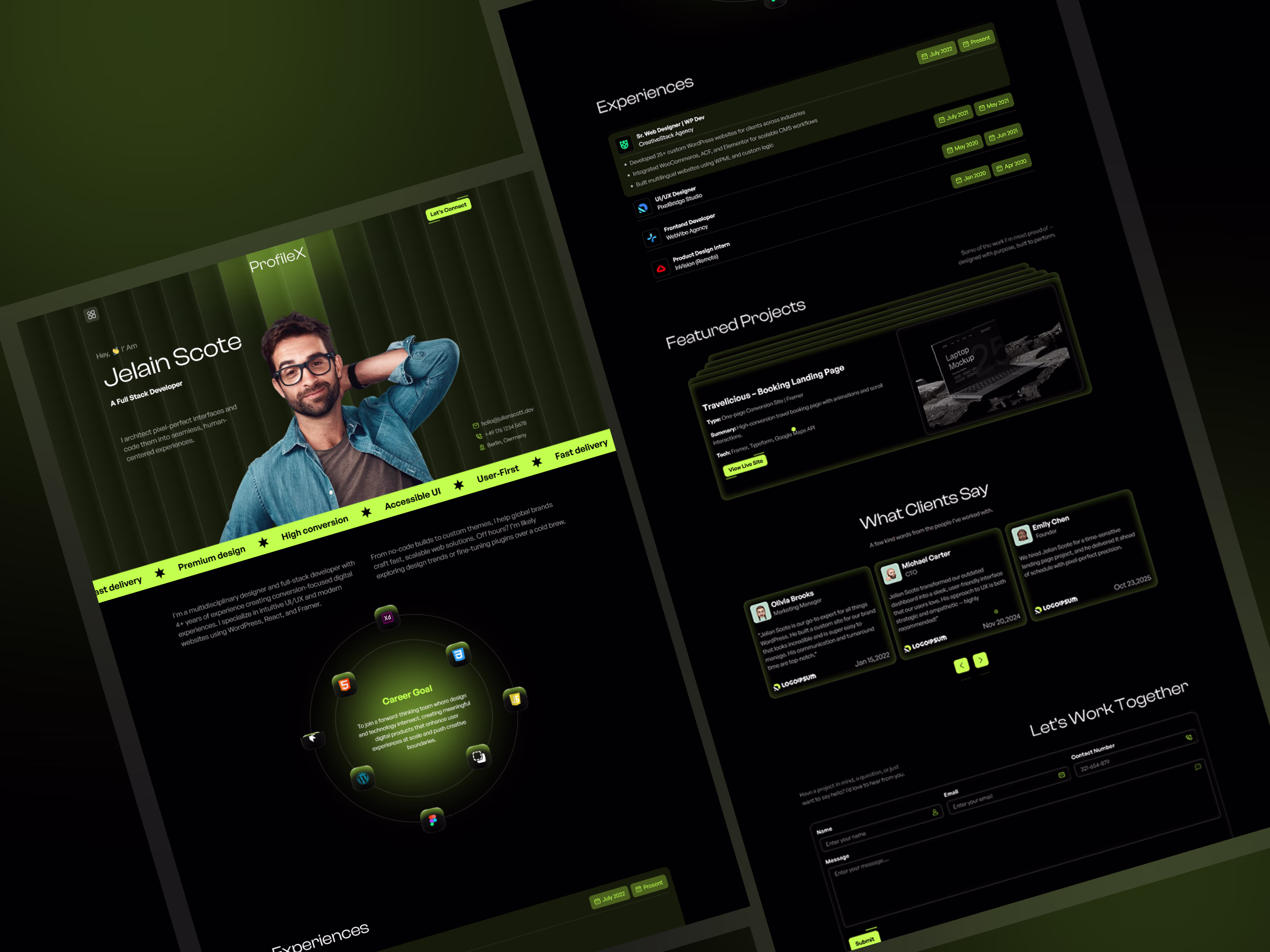 All crafted for clarity and impact. Built with Framer’s flexible design system, it’s easy to edit, customise, and adapt to your personal brand. Whether you’re showcasing creative projects, job experience, or client feedback, ProfileX provides the perfect foundation for a polished online presence.