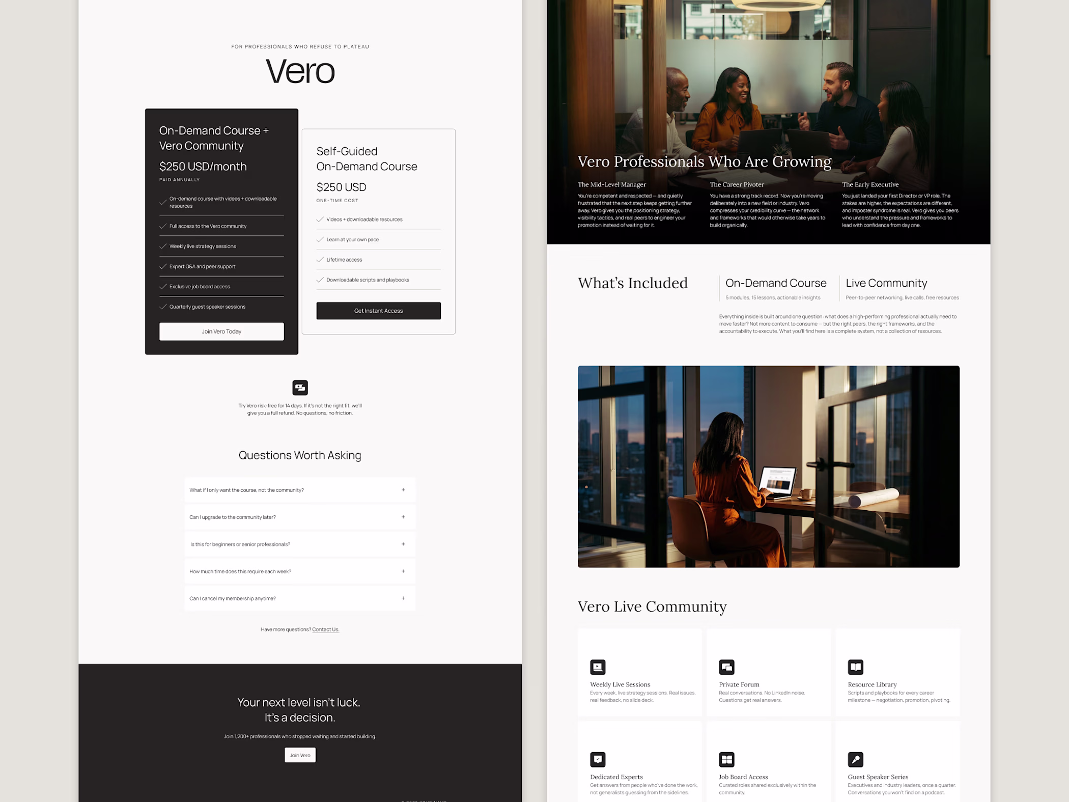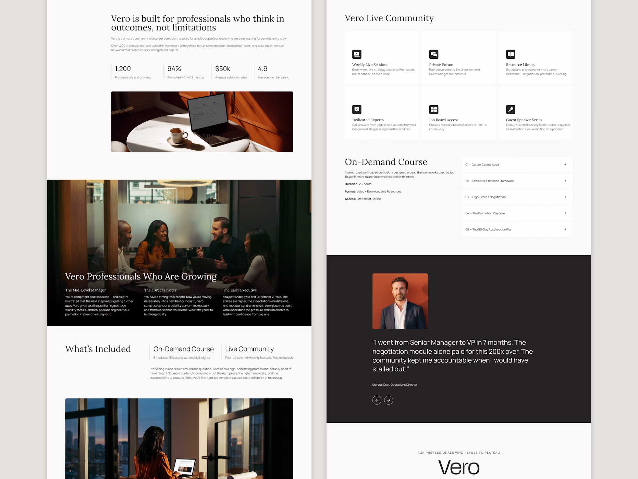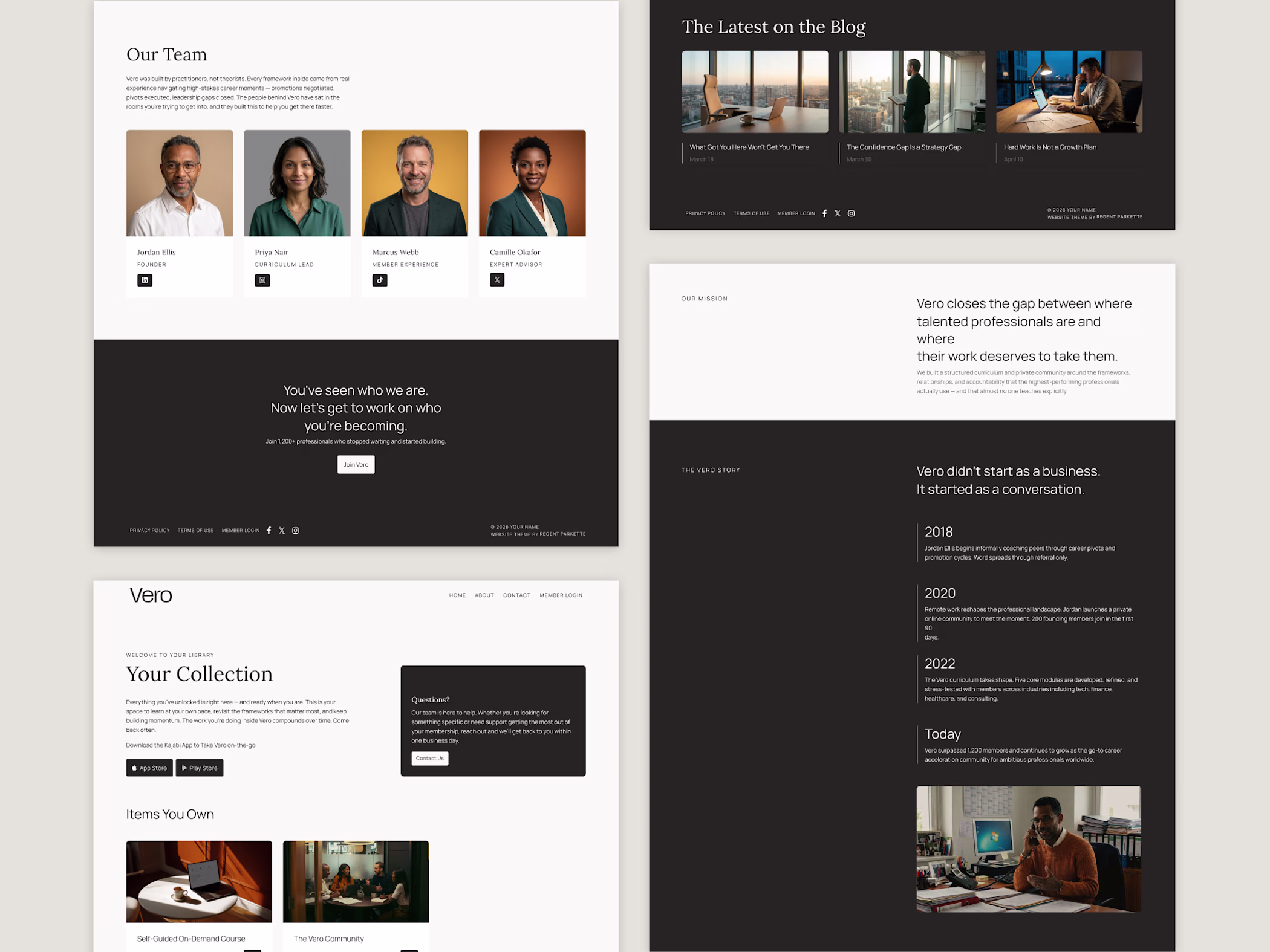 Vero is a mini Kajabi theme for coaches, consultants, and course creators who want their site to feel as polished as their offer—and launch as soon as possible. Built with generous whitespace, refined typography, and a considered visual hierarchy, Vero gives your content room to breathe — and your brand room to lead.