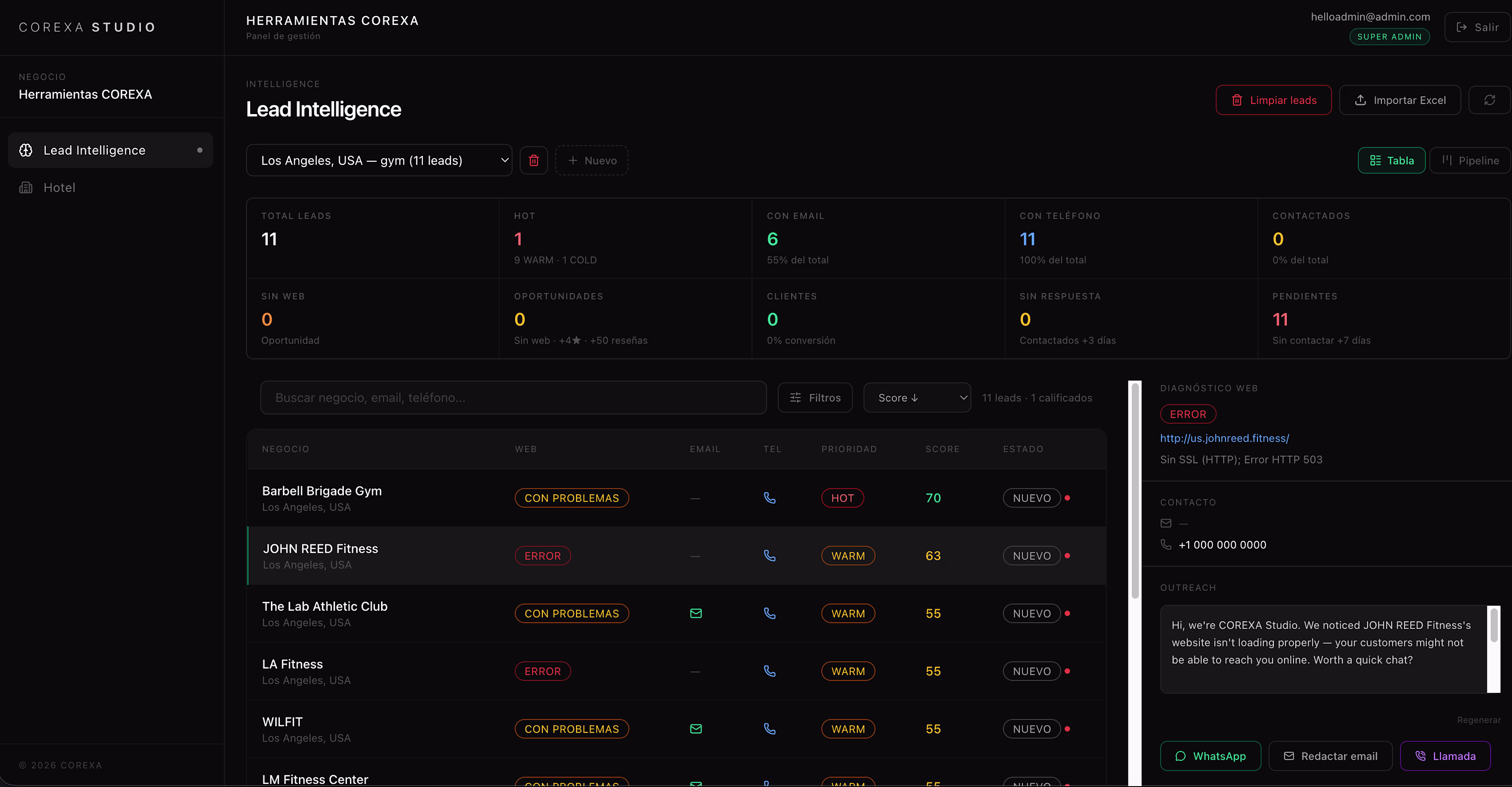 We built this custom dashboard to transform mass prospecting into strategic decision-making. It’s designed for speed, precision, and high-volume outreach.