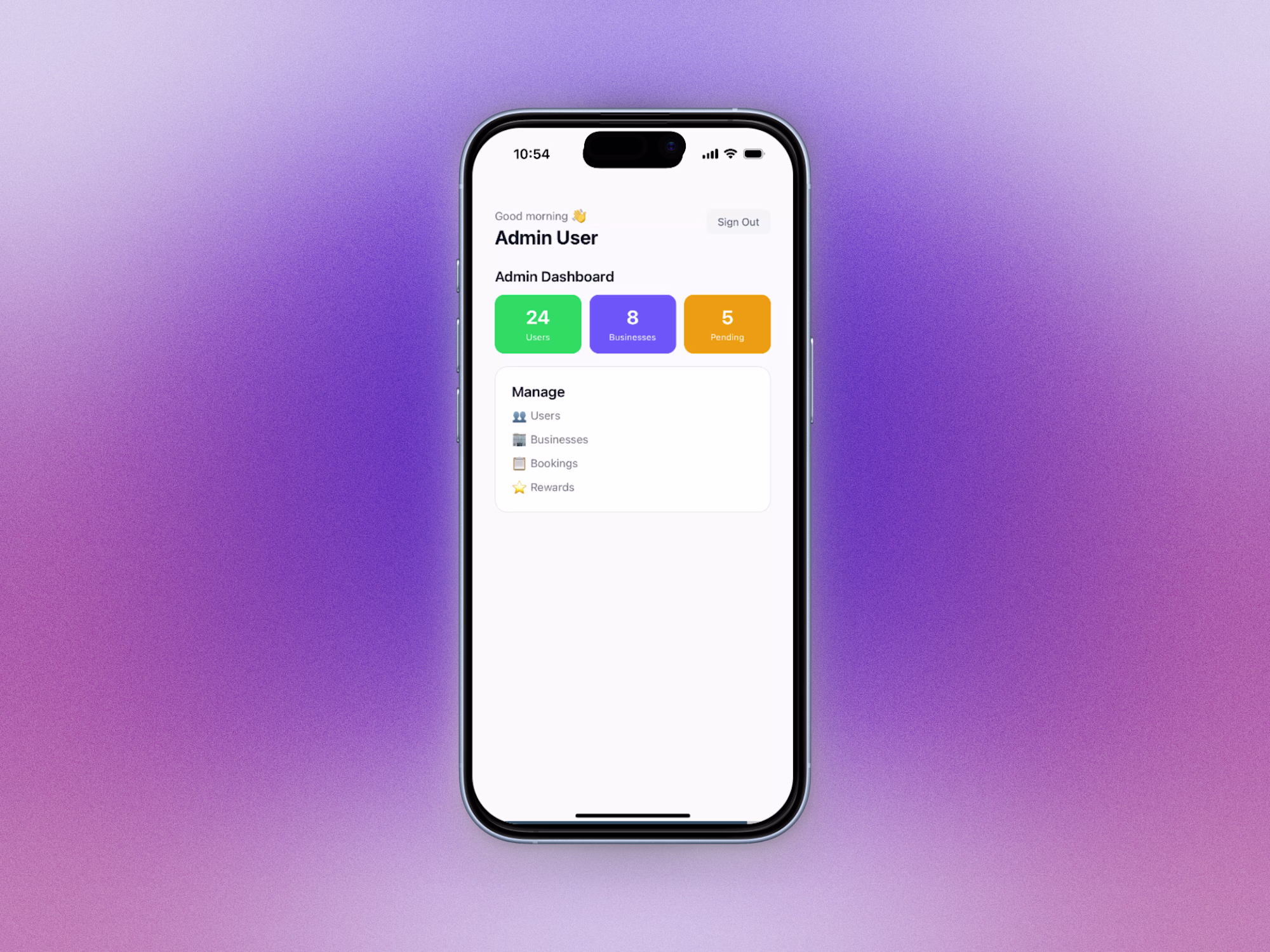 Skip the boilerplate. This production-ready React Native starter gives you Supabase auth, role-based navigation (user / business / admin), a wired database with RLS policies, and clean screens out of the box — all in JavaScript with Expo SDK 54.