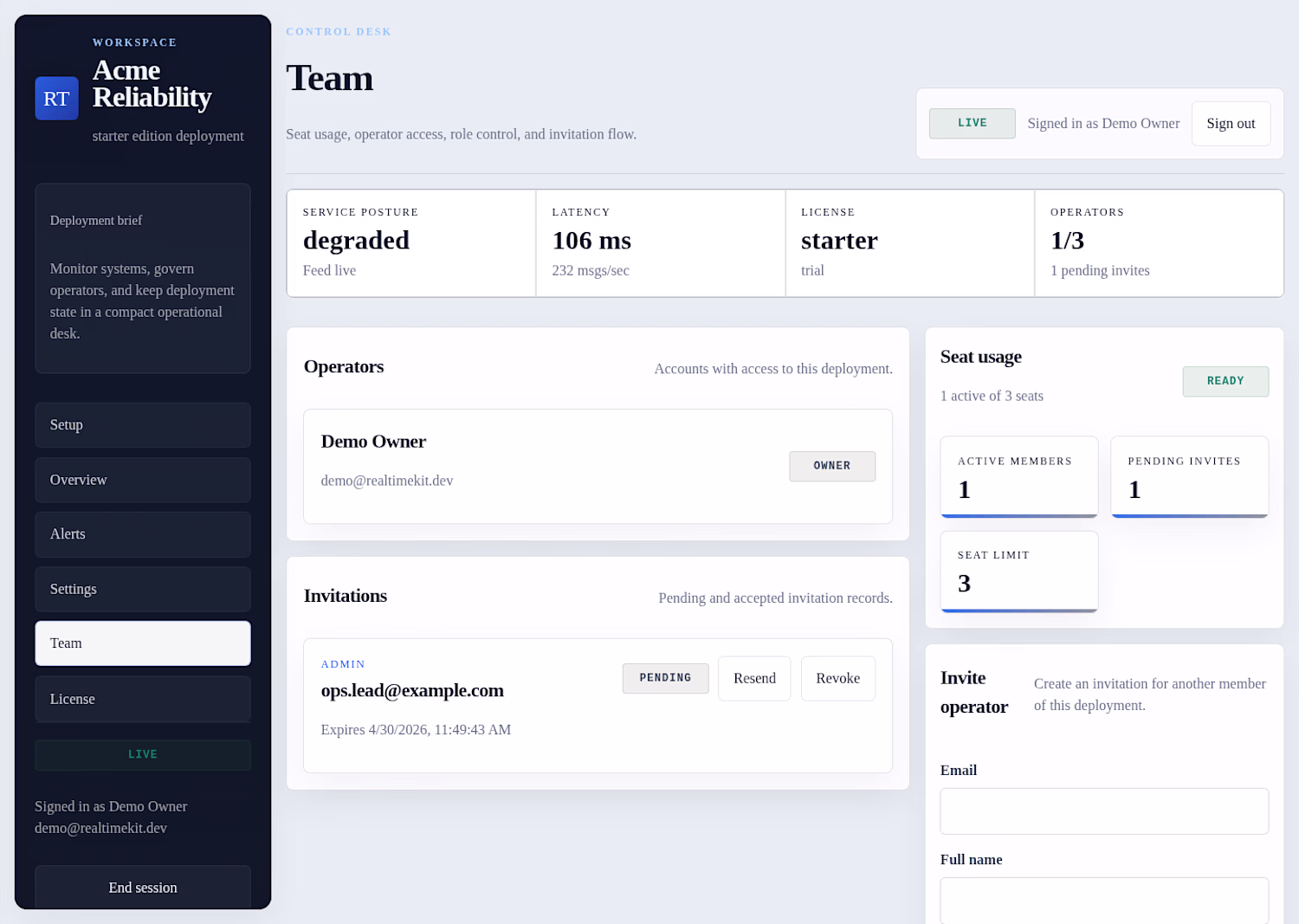 Self-hosted realtime ops starter kit with source code, deployment docs, and a production-ready foundation for internal dashboards and operational tools.