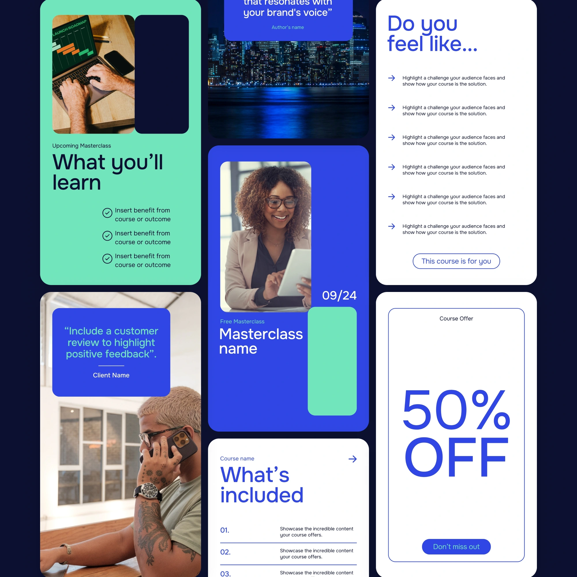 • 30 Feed template designs (1080px by 1080px)