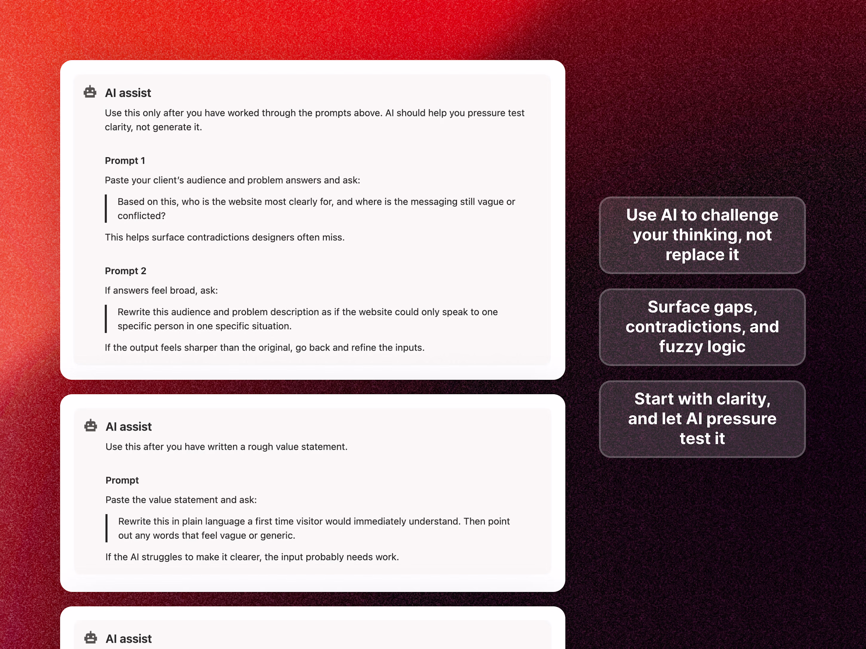 Instead of jumping straight into visuals, you’ll work through the same questions experienced designers use to clarify audience, define value, structure the homepage, and write a clear hero and call to action. The goal is not more pages or prettier design. It’s alignment and conversion.