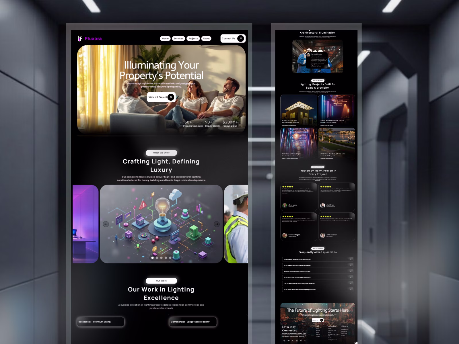 Fluxsora is a high-performance Framer template crafted specifically for architectural lighting studios, interior designers, real estate developers, and engineering firms looking to present their work with elegance, clarity, and visual impact.