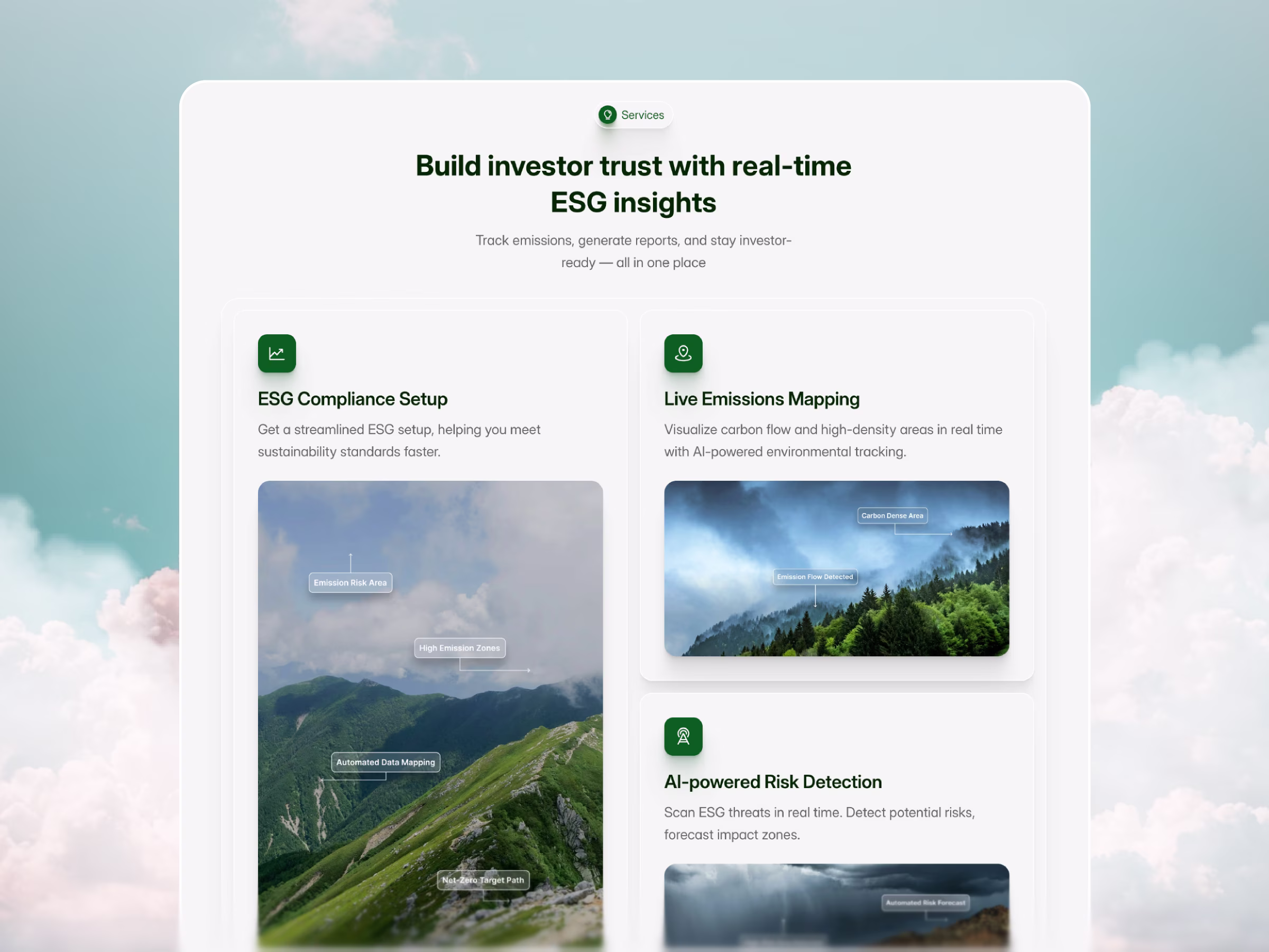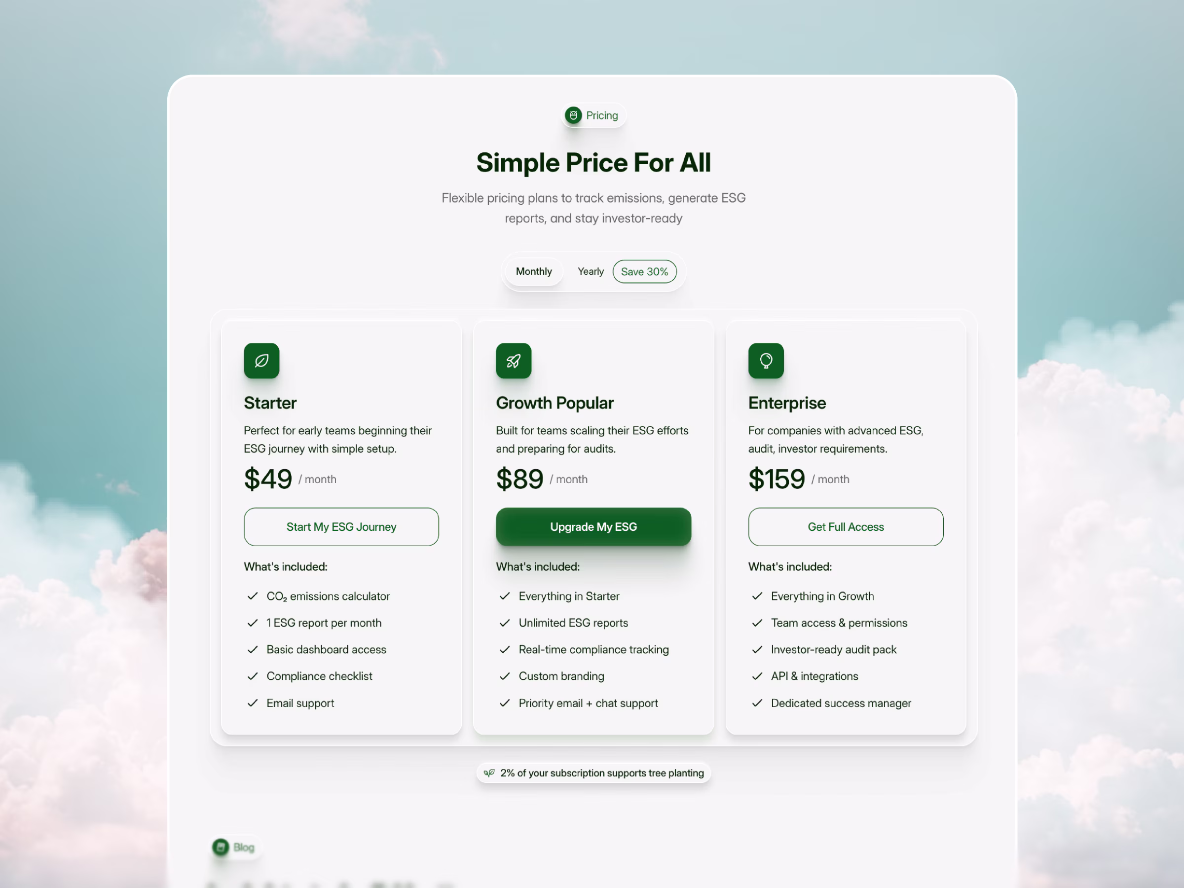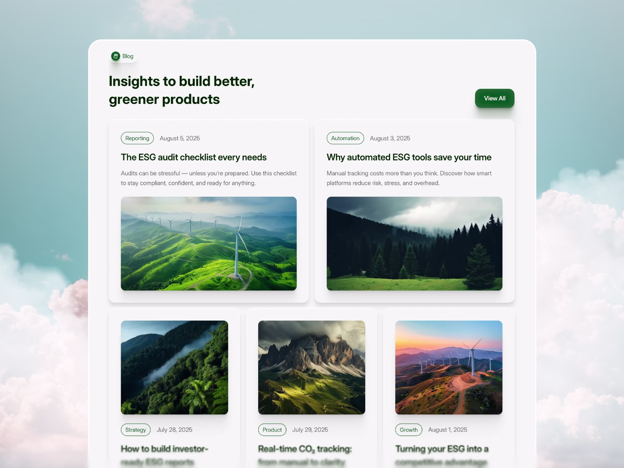 Website template for climate tech, ESG platforms and sustainability startups — includes impact sections, metrics, reports, blog and investor-ready layouts.