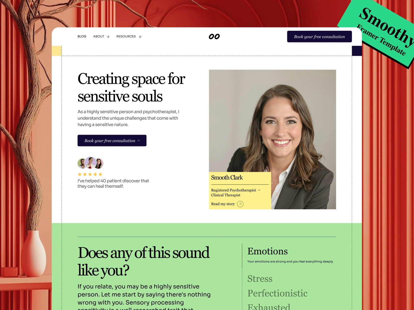 Smoothy a sleek and versatile Framer template, perfect for therapists and professionals seeking a personal website to establish their online presence. Designed with simplicity and modern aesthetics in mind, this template is adaptable for other industries, making it an excellent choice for coaches, consultants, and creatives.