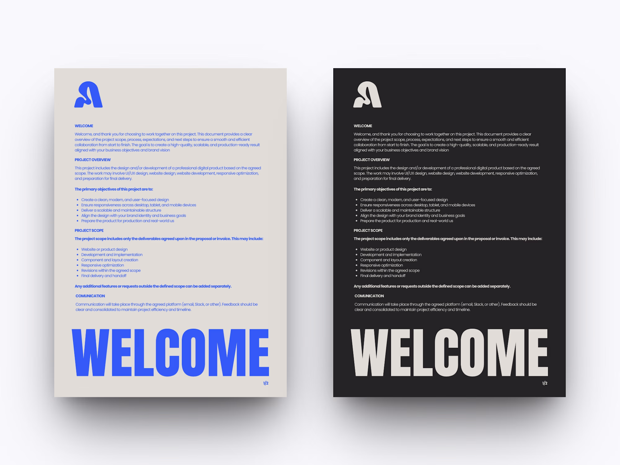 This template is suitable for freelance services, web design, UI/UX design, website development, SaaS projects, consulting services, creative agencies, and AI agents managing freelance operations.