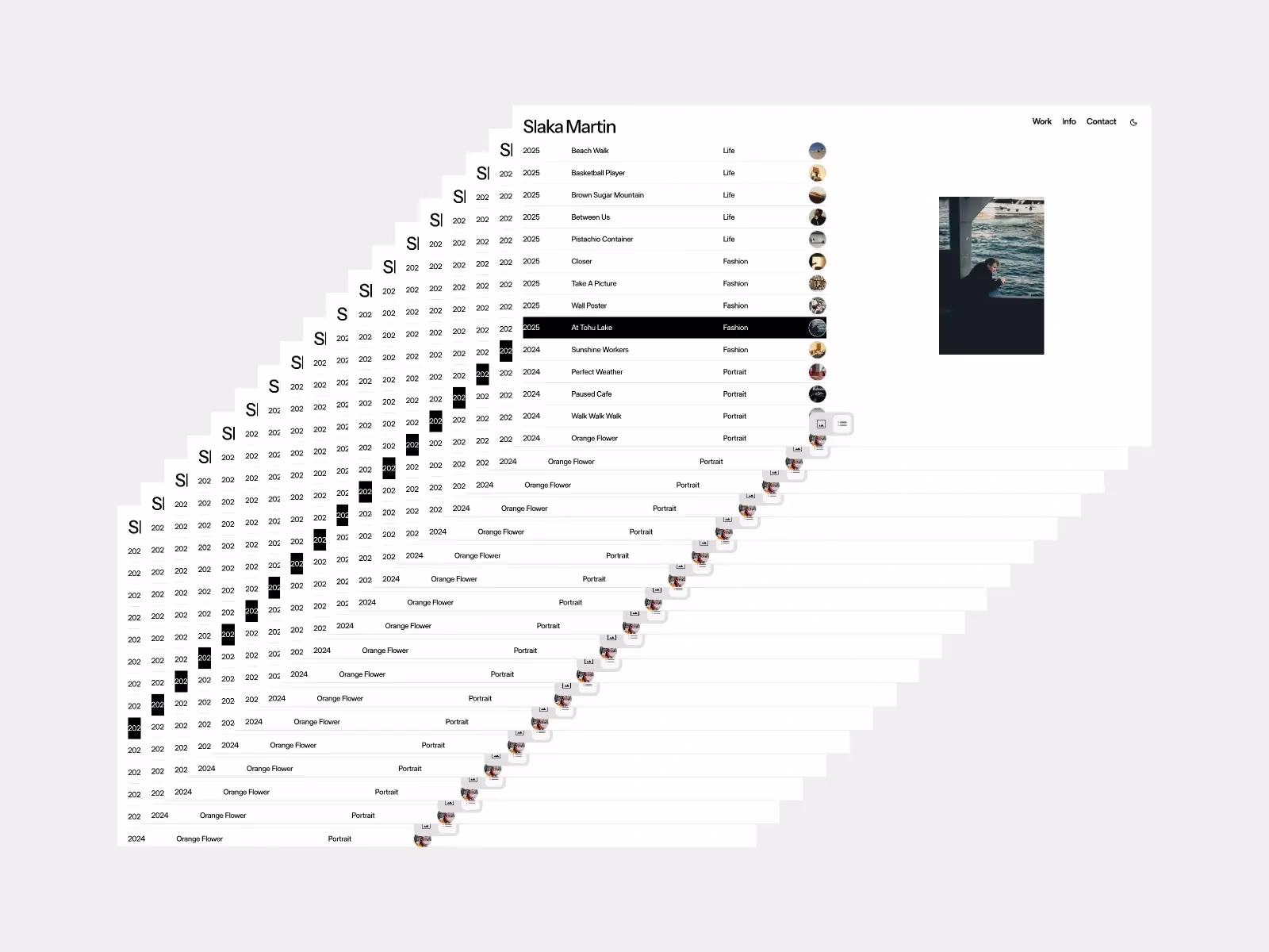 Slaka Martin is a Framer portfolio template designed with a horizontal scroll layout, featuring smooth animations and interactive details.