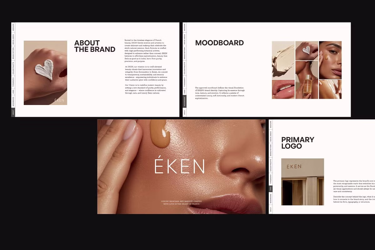 Whether you’re building a premium skincare brand, a boutique label, or a refined lifestyle identity, this template ensures your brand book and presentation deck look as professional as your creative work.