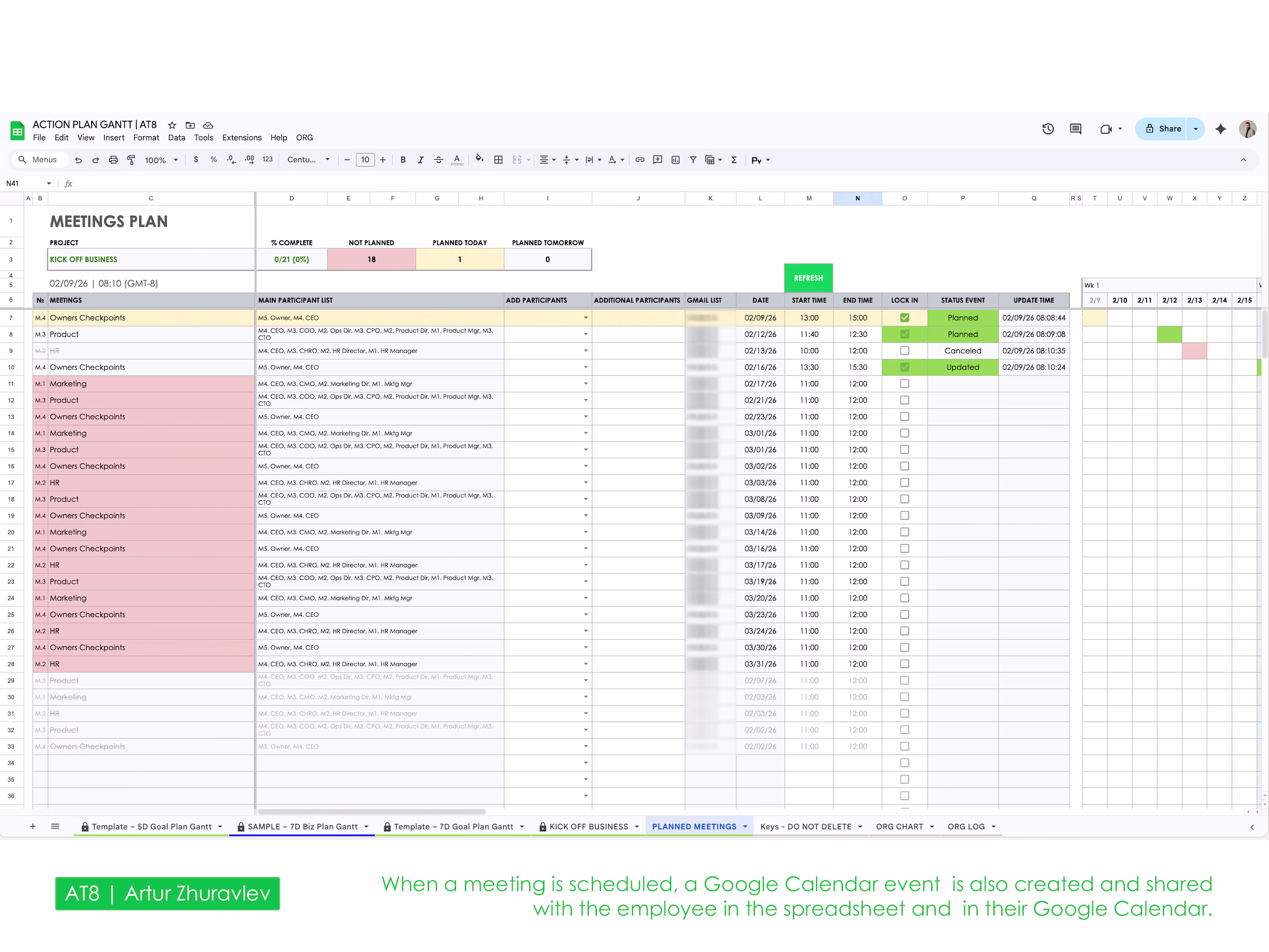 Meetings synchronized across both sheets