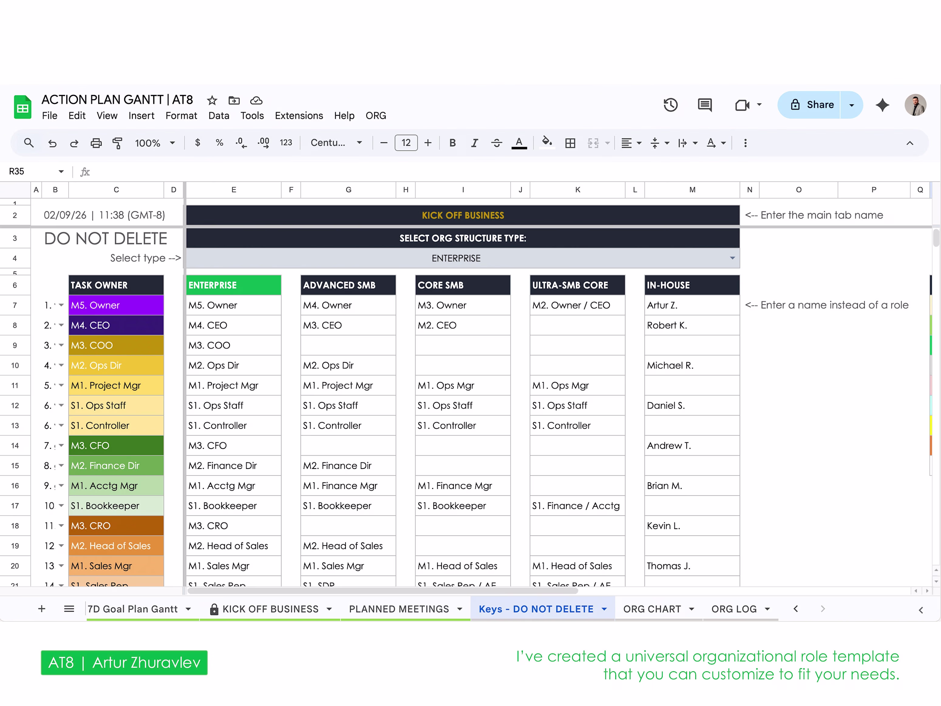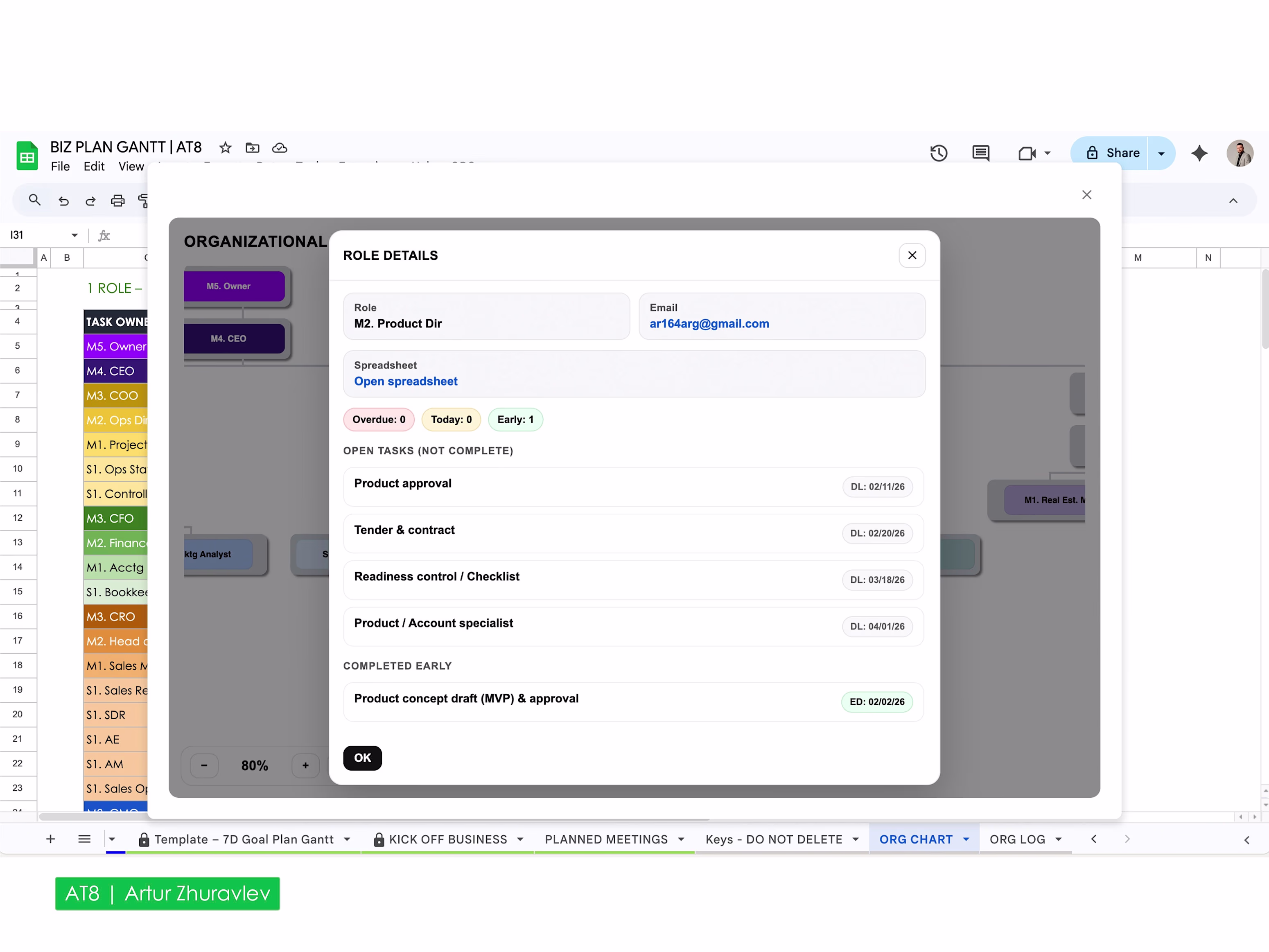 Task sheet for each responsible team member based on the CEO’s master sheet