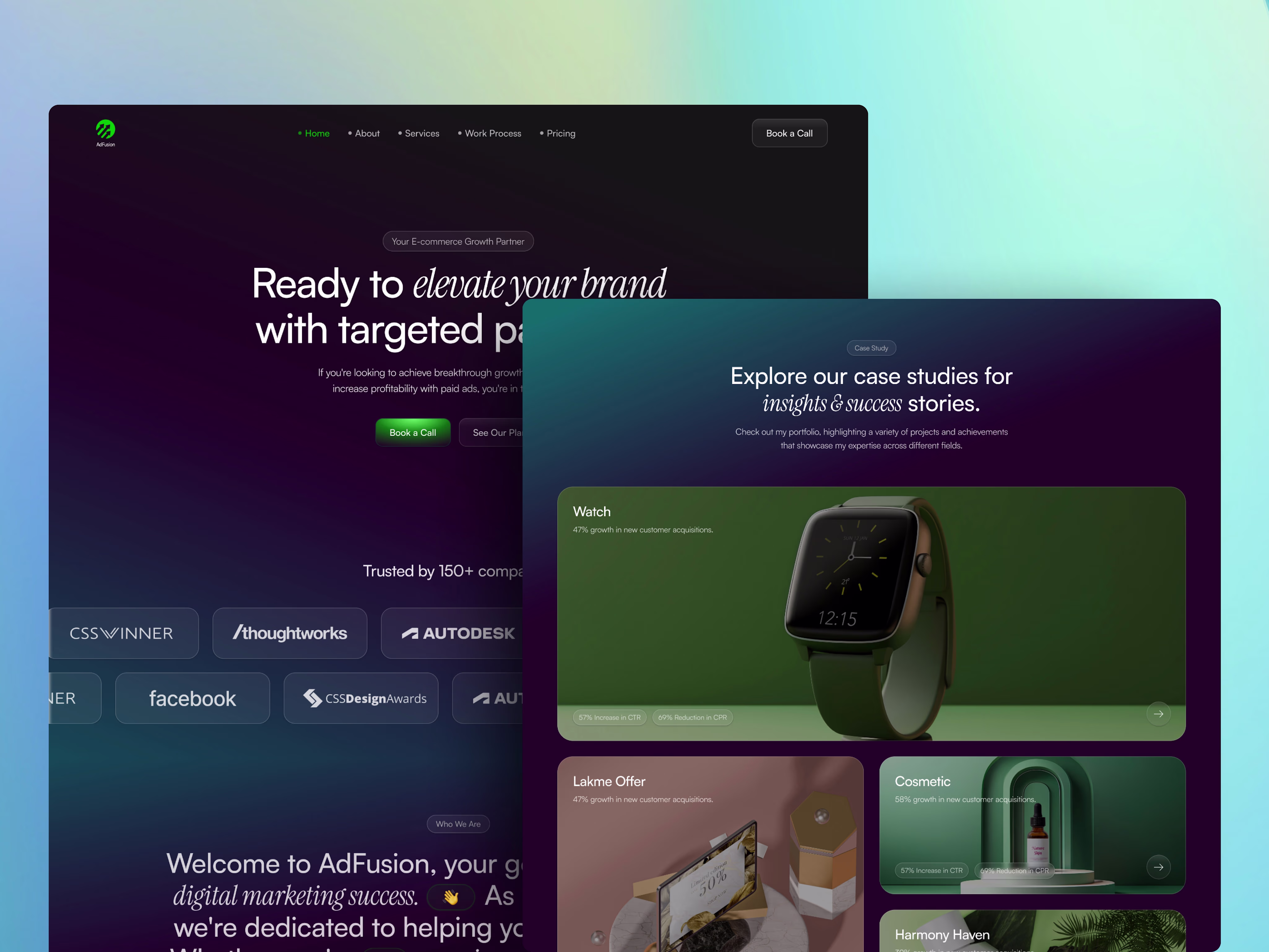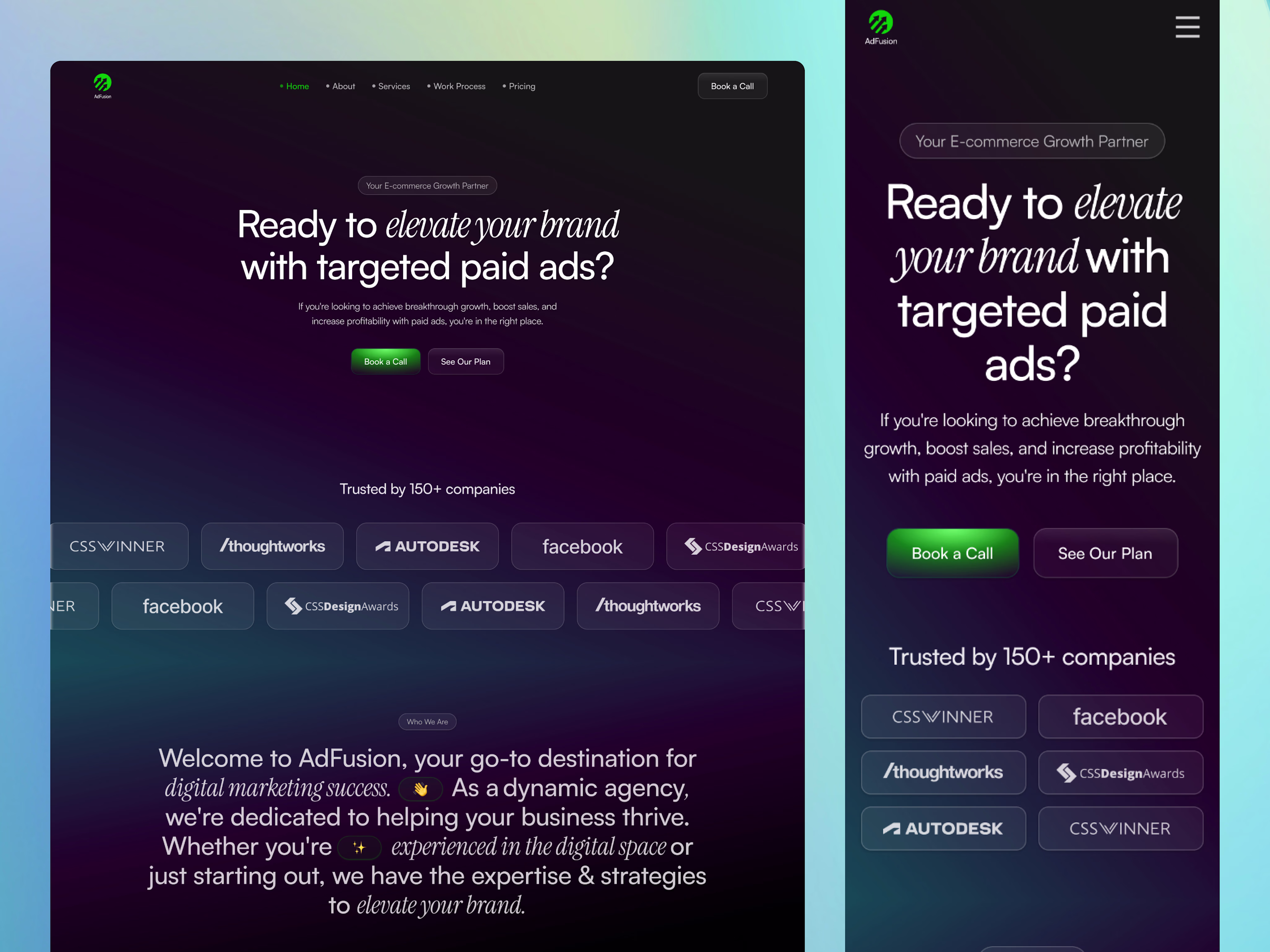 Check out the AdFusion Landing Page Webflow Template, designed to give your brand the spotlight it deserves through fantastic ad campaigns on platforms like Google Ads, Meta, YouTube, and beyond. Our template comes with 5 ready-to-go sections, a fully optimized design, and flexible layouts perfect for all your creative and digital projects. Setting up is a breeze with our user-friendly drag-and-drop editor, and with super-fast loading times, your visitors will have a smooth experience!