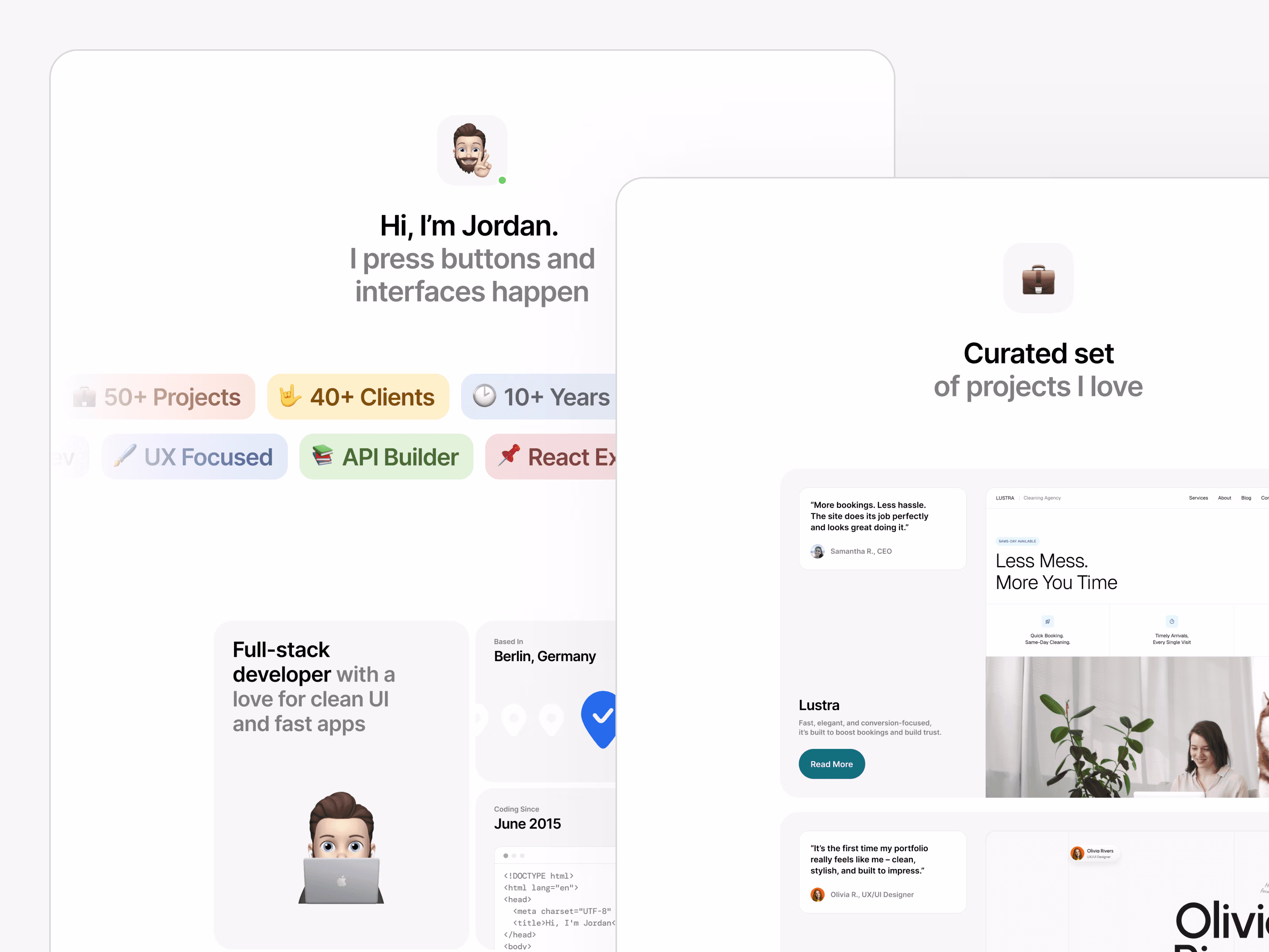 Bluren is a sleek, minimalist portfolio template built for developers who want to showcase their work with clarity, personality, and confidence. With clean layouts, smooth animations, and a strong focus on thoughtful typography, it makes your projects stand out without distraction.