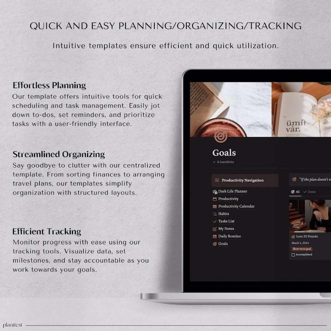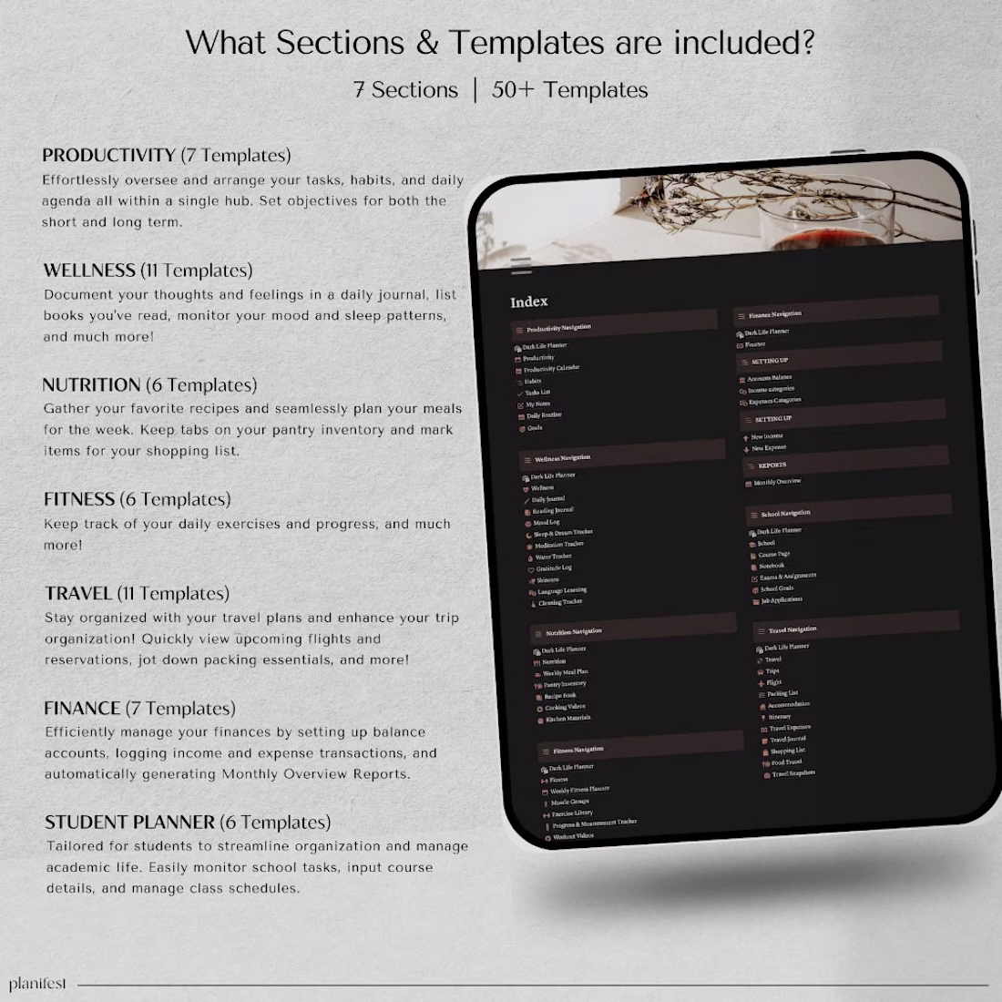 ensuring it's gentle on the eyes. Additionally, it offers the flexibility to seamlessly switch to light mode for those who prefer a brighter interface. This comprehensive solution is aimed at optimizing your daily schedule and boosting efficiency. Manage well-being, finances, aspirations, fitness, nutrition, travel, and academic responsibilities effortlessly, all in one place, with smooth monitoring.