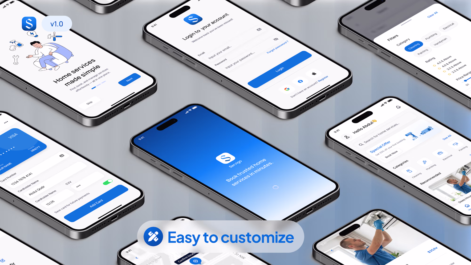Servigo is a production-ready Figma UI Kit built specifically for on-demand service apps — think home cleaning, repairs, beauty, and more.