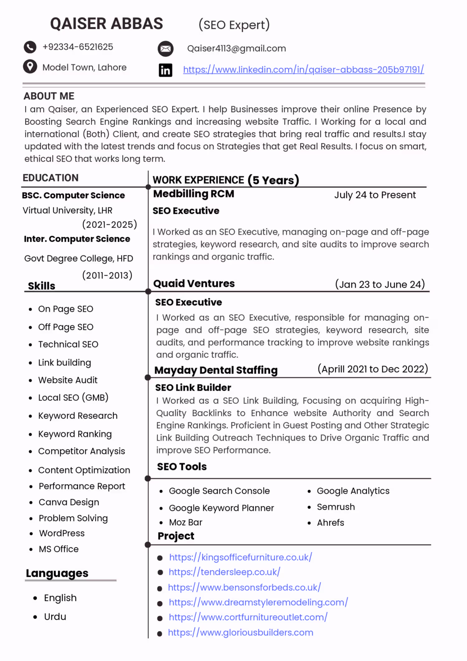 Qaiser Abbas | SEO Expert with 5 Years Experience