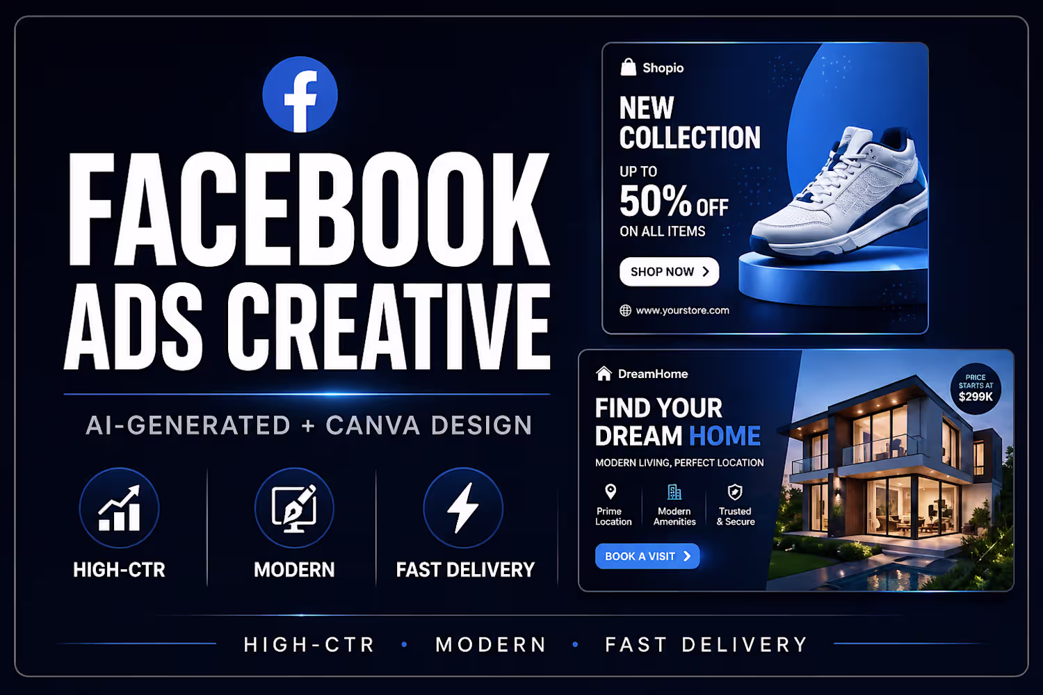 Currently creating high‑CTR Facebook Ads Creatives using AI tools (Google Flow, Nano, Banana) combined with clean Canva layouts. Working on ad sets for e‑commerce, restaurants, real estate, and app promotions. If you need fresh ad creatives, I’m open for new projects.