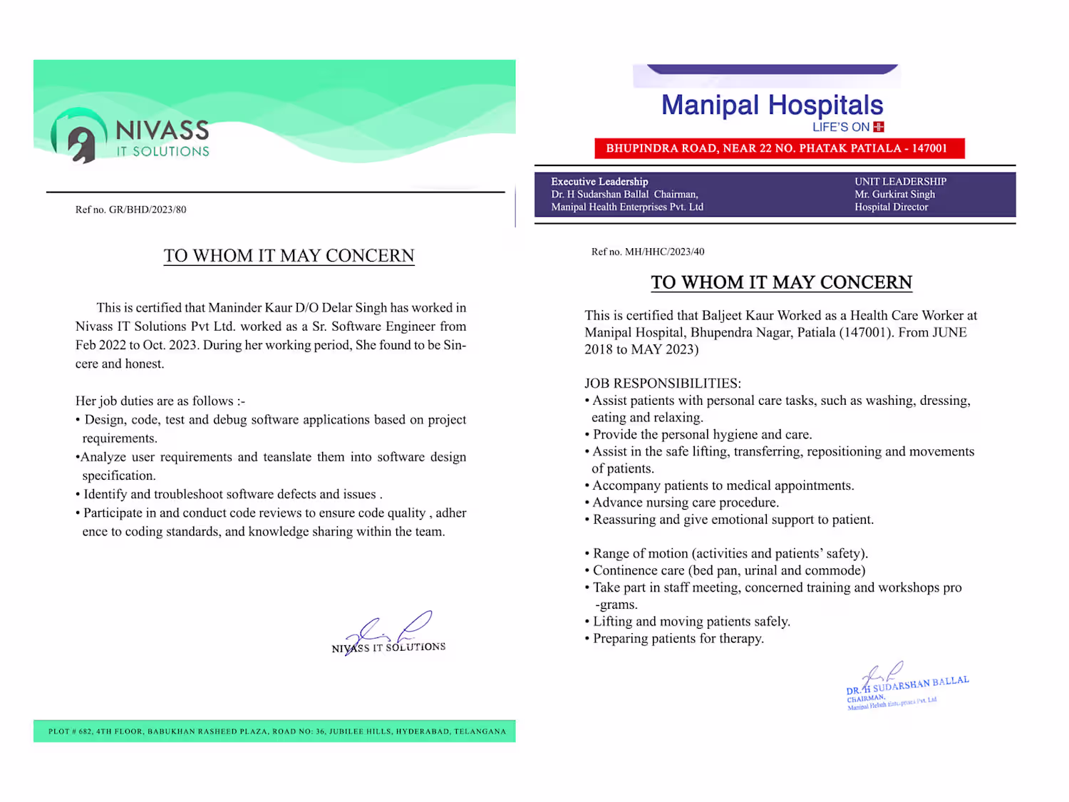 Experience Certificate