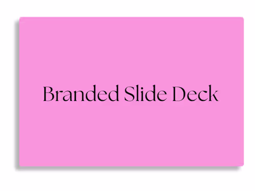 A branded, cohesive presentation designed—aligned with your goals (pitch, webinar, course, etc.). Includes layout, styling, and formatting based on your content.
