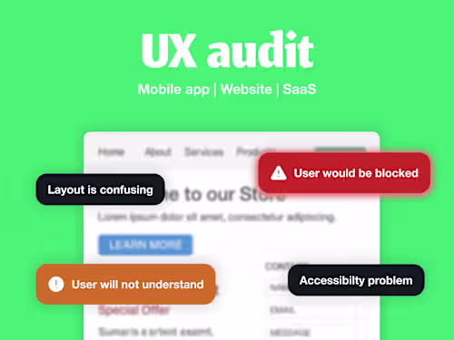 A structured PDF report detailing the key UX issues identified in your product, along with clear, illustrated design recommendations to guide improvements. Optional: For an additional fee, you can also receive a tailored UX roadmap that prioritizes changes and outlines next steps for implementation.