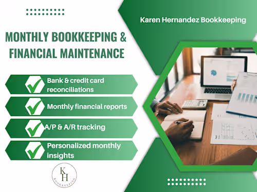 - Monthly bank and credit card reconciliations - Profit & Loss, Balance Sheet, and Cash Flow reports - Accounts payable and receivable tracking - Payroll posting and expense categorization - Monthly financial summary and key insights - Communication and check-ins via email or Zoom