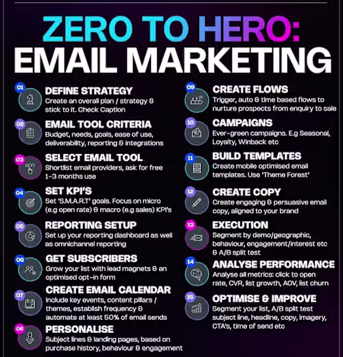 If you’re already using a platform like Klaviyo, Mailchimp, or ConvertKit, we’ll start by reviewing what’s in place. I’ll go through your current flows, lists, campaigns, and key metrics to see what’s working, what’s underperforming, and where the gaps are. You’ll get a clear, actionable summary that outlines what to fix, improve, or build from scratch.