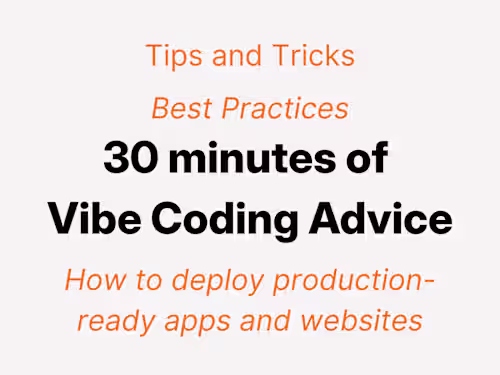 A 30 minute vibe coding advice call to discuss best practices and deploying production-ready apps and websites.