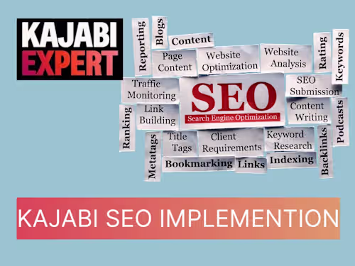 - SEO audit of your Kajabi site with key recommendations - Keyword research tailored to your niche and audience - Optimized titles, meta descriptions, and URLs for core pages - On-page SEO improvements (headings, structure, internal linking) - Image alt text and file naming for better search visibility